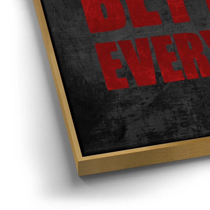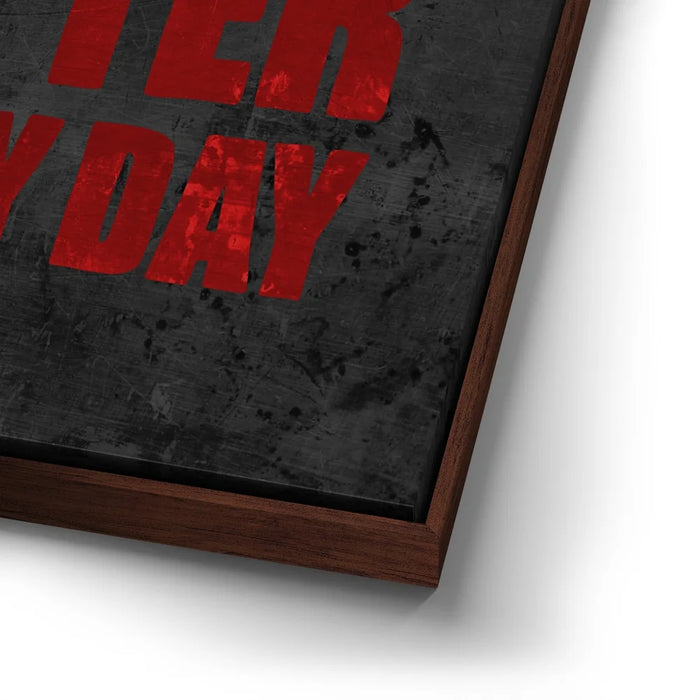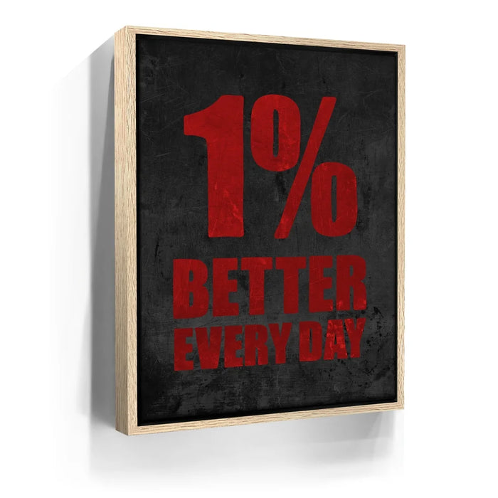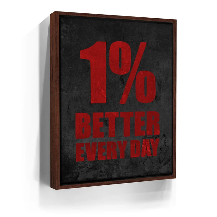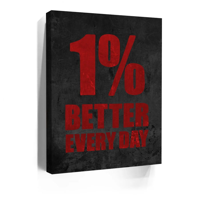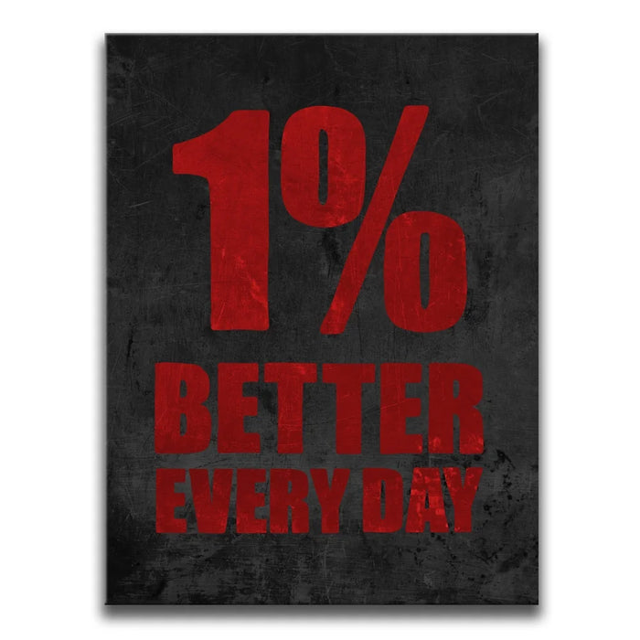 1% Better - Red captures the essence of daily progress through raw, minimalist power. Bold red typography on a dark, distressed background delivers a message of relentless self-improvement — a reminder that greatness isn’t achieved overnight, but earned in small, consistent steps. The gritty texture symbolizes effort, discipline, and resilience, making this piece a motivational focal point for anyone driven to grow stronger, sharper, and better — one percent at a time.