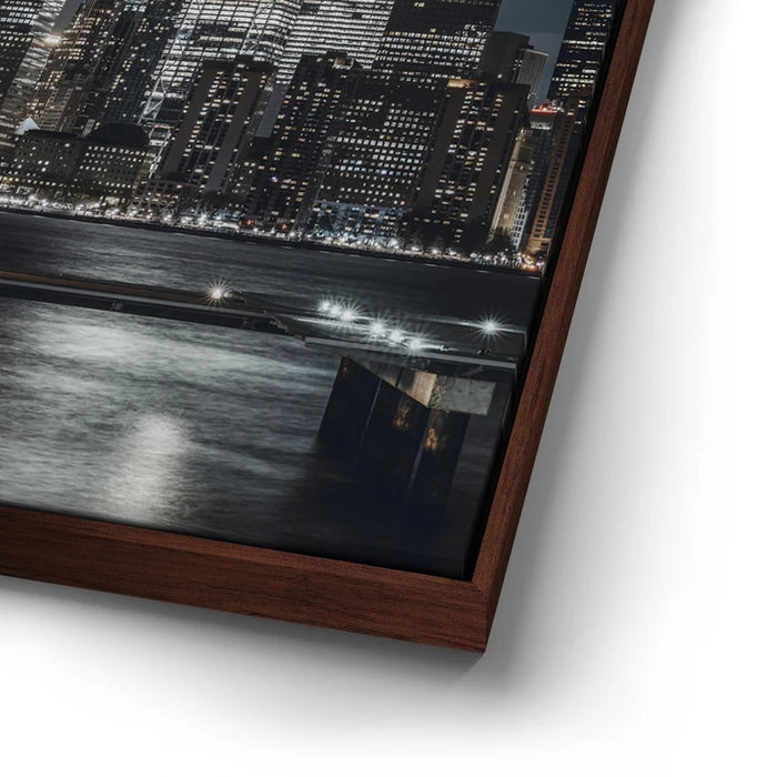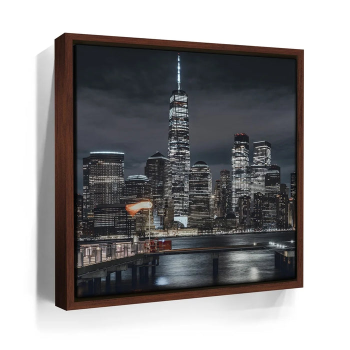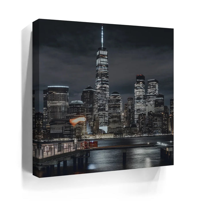 1 World Trade Center and Lower Manhattan at Night captures the electrifying beauty of New York City’s skyline after dark. The Freedom Tower gleams brilliantly among the surrounding skyscrapers, its lights reflecting across the still waters of the Hudson River. The cool tones and shimmering reflections create a scene that’s both modern and timeless — a portrait of ambition, resilience, and the spirit that defines the city that never sleeps. This striking nightscape embodies the pulse of Manhattan in its most captivating form.