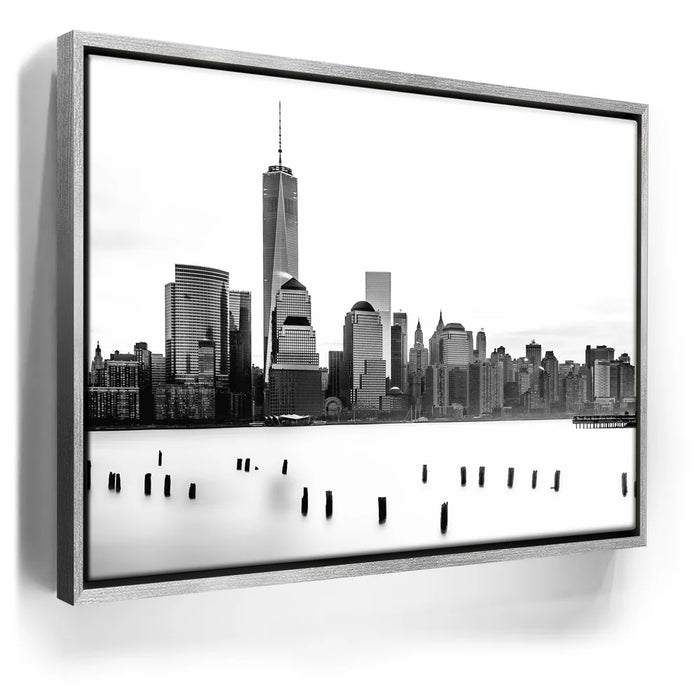 “1 World Trade Center And Lower Manhattan Black And White” by Barbarossa presents the New York City skyline in timeless monochrome. The striking silhouette of One World Trade Center dominates the composition, surrounded by the architectural density of Lower Manhattan, reflected softly against the Hudson River.