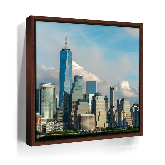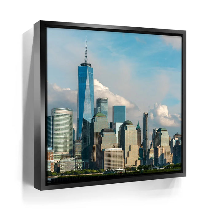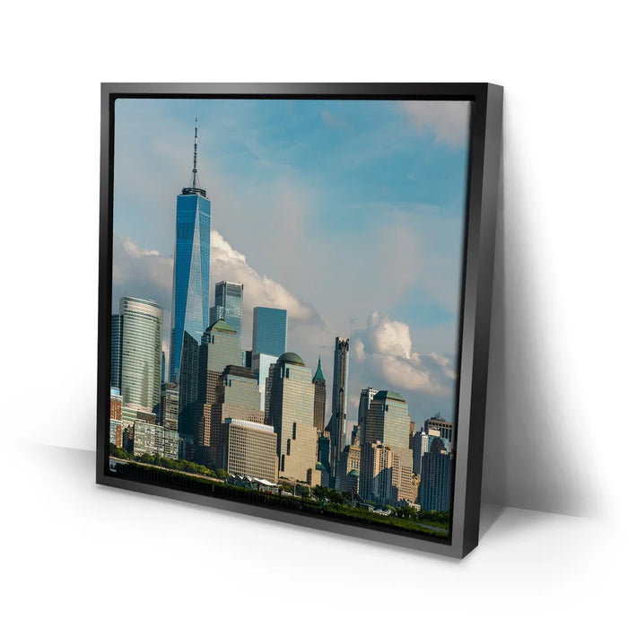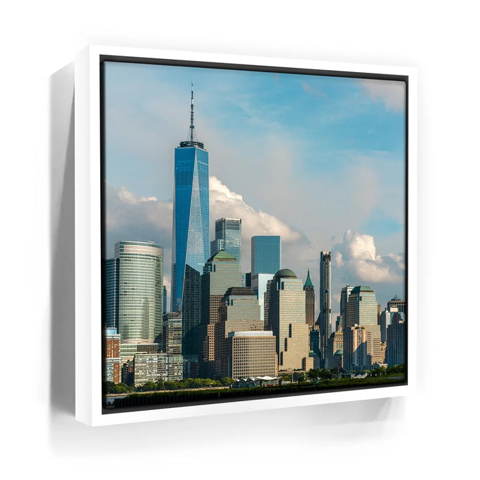 1 World Trade Center and Lower Manhattan Square showcases New York City’s architectural grandeur beneath a brilliant blue sky. The Freedom Tower stands tall as the centerpiece, surrounded by the sleek geometry of Lower Manhattan’s iconic skyline. The crisp daylight brings every glass and stone surface to life, reflecting the energy and ambition that define the city. A modern and inspiring urban portrait, this artwork celebrates the strength, balance, and resilience of America’s most recognizable skyline.