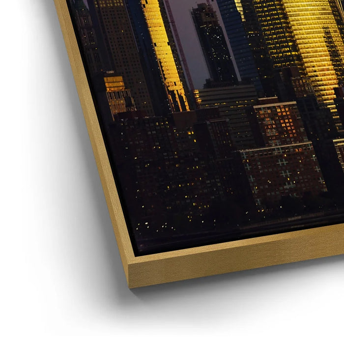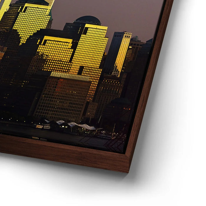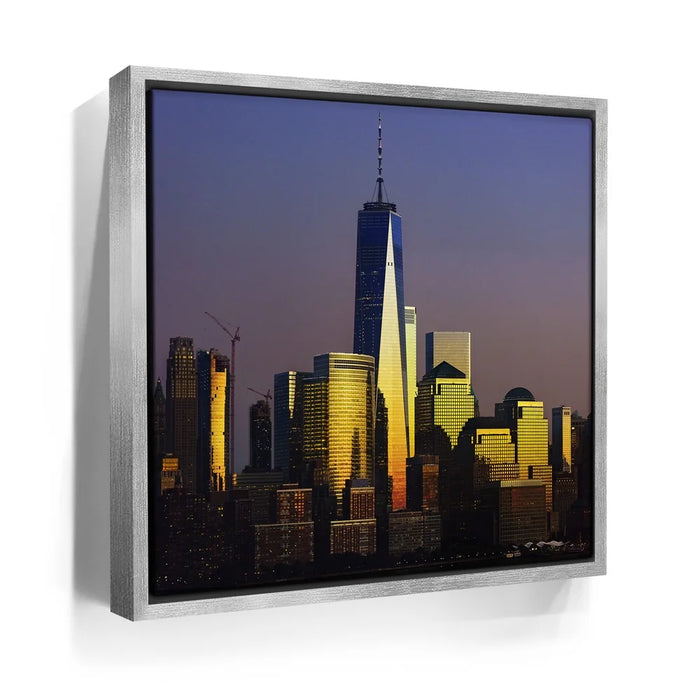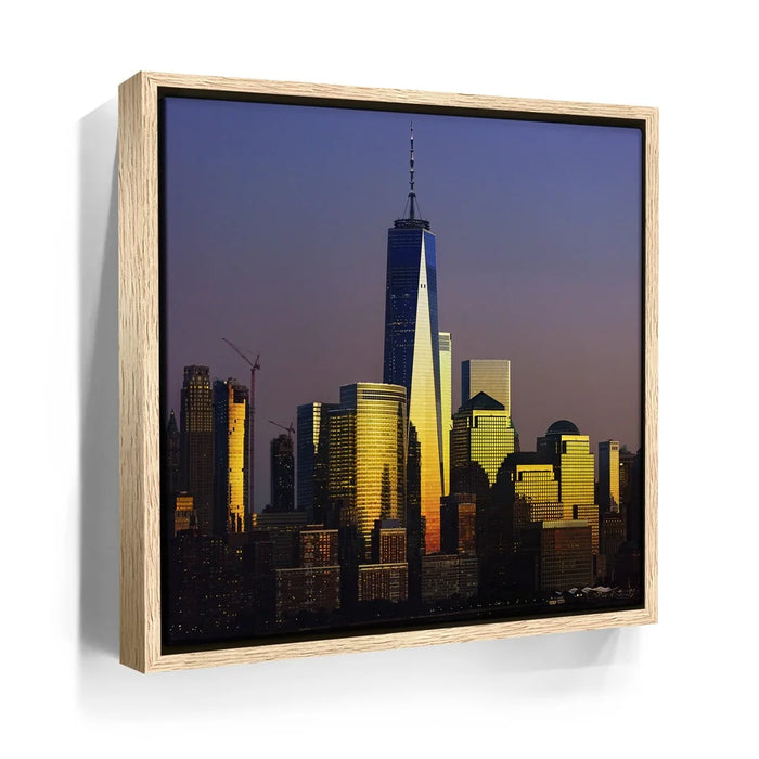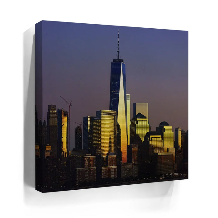 1 World Trade Center at Dusk captures the breathtaking transition between day and night over Lower Manhattan. The iconic Freedom Tower glows in warm golden light as the setting sun reflects off the surrounding glass facades, symbolizing strength, hope, and progress. The soft gradient sky adds a calm balance to the energy of the city below, creating a powerful visual harmony. This piece embodies the enduring beauty and resilience of New York City as it moves confidently from one chapter to the next.