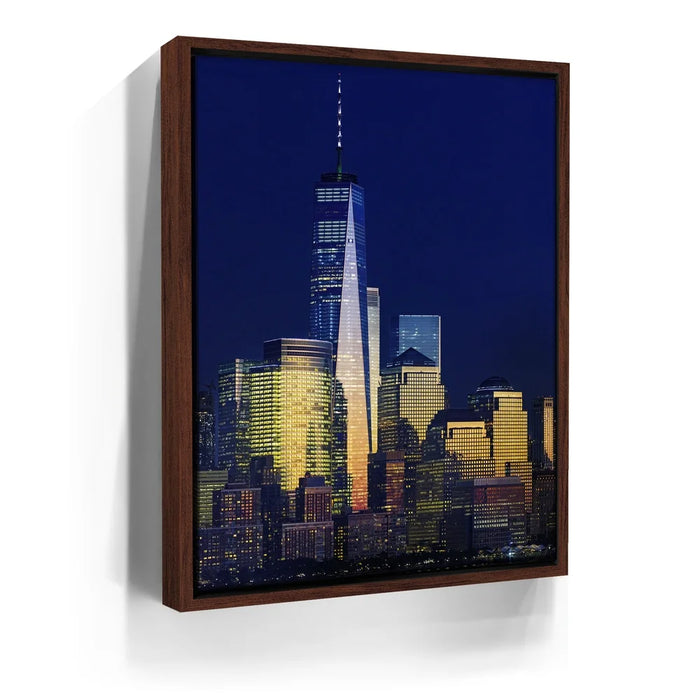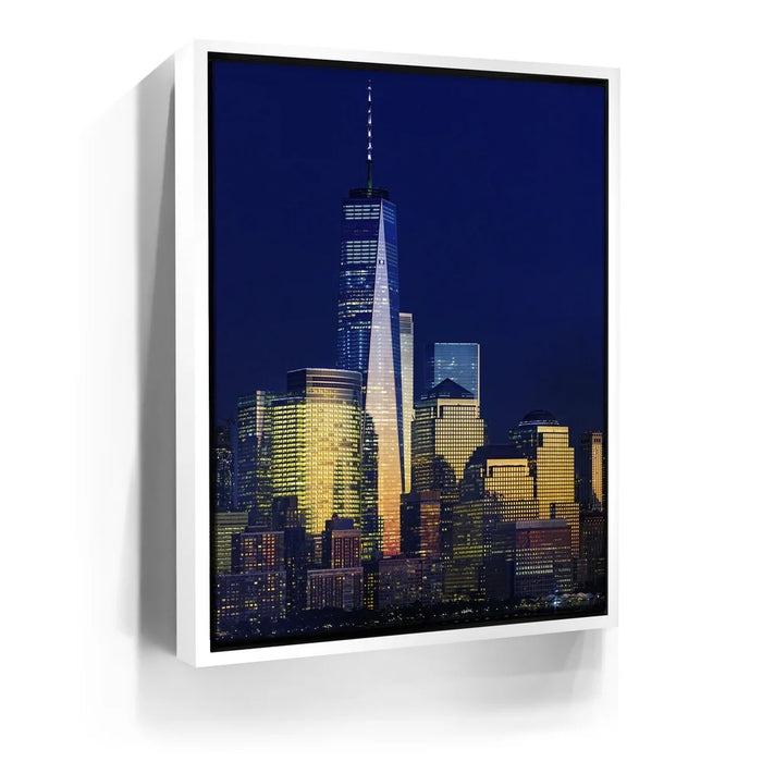1 World Trade Center Shining by Barbarossa captures the brilliance of Lower Manhattan illuminated against the night sky. The One World Trade Center glows with striking reflections, symbolizing resilience and modern beauty at the heart of New York City.