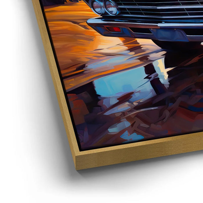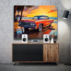 The serene ocean waves and beachscape further enhance the idyllic, nostalgic feel of this piece. With its focus on classic automotive beauty, paired with a breathtaking ocean sunset, this artwork is perfect for car enthusiasts and anyone who appreciates timeless, vintage scenes.