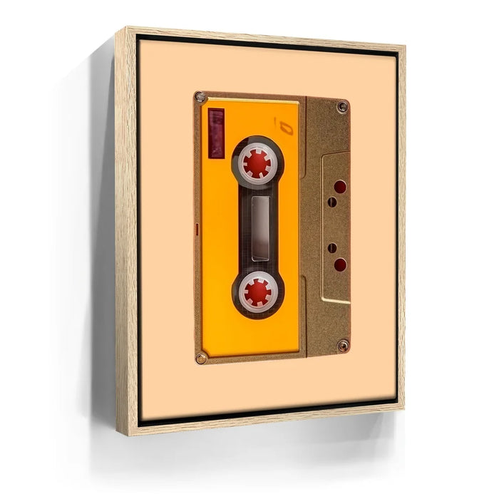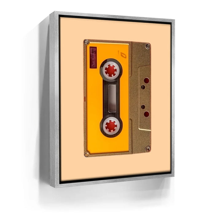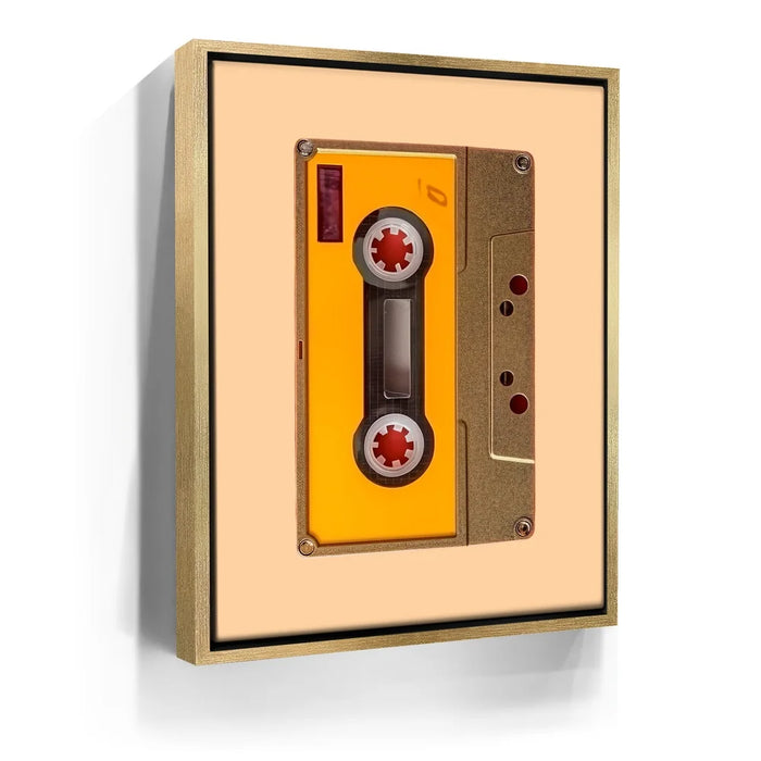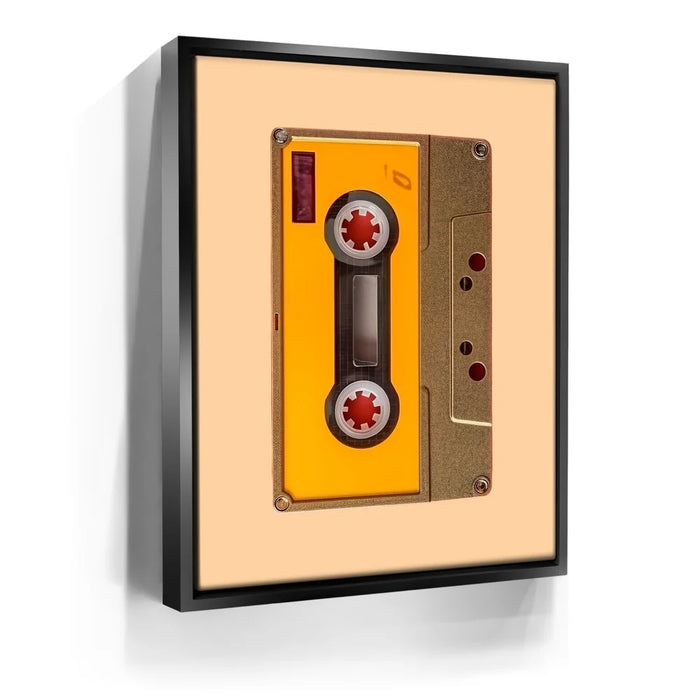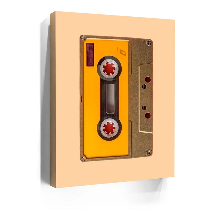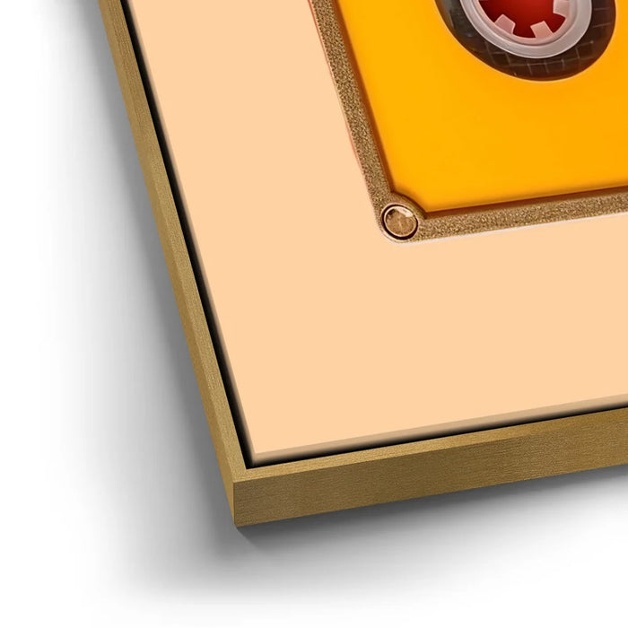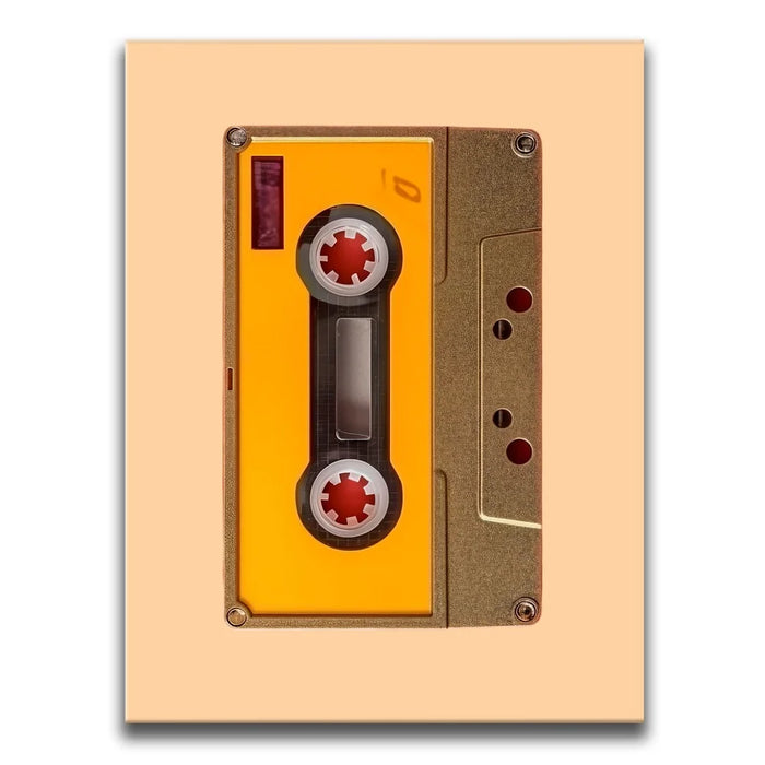 This retro artwork captures the essence of 90s nostalgia with a vibrant yellow cassette tape. The bright, eye-catching design takes viewers back to the days of analog music, rewinding memories of mixtapes and personal music collections.