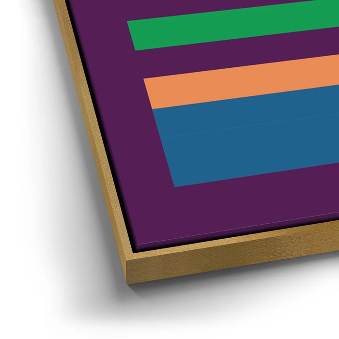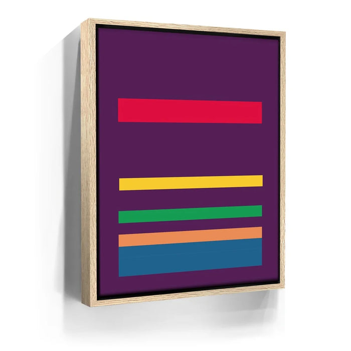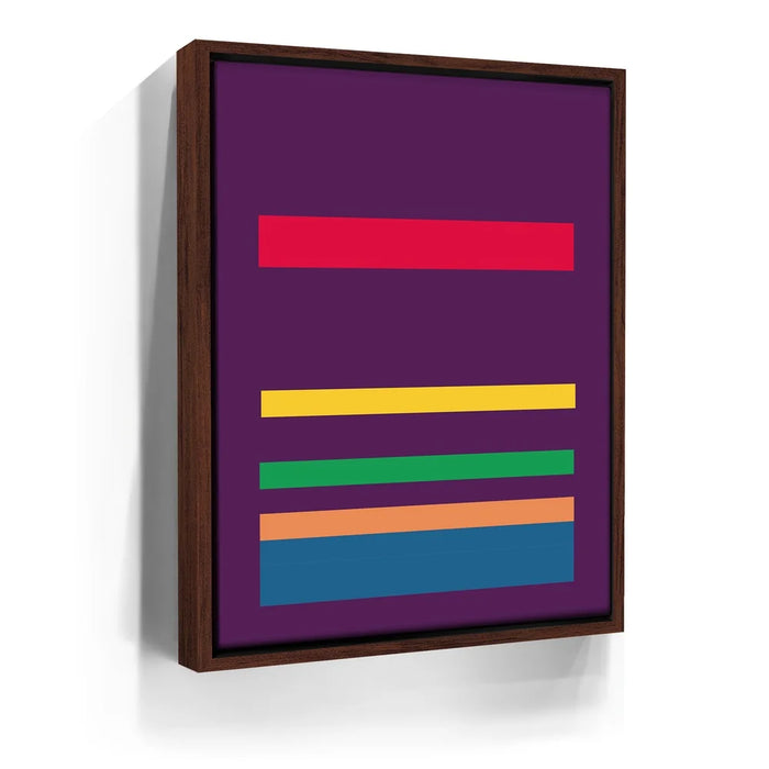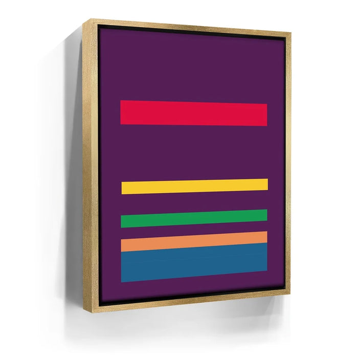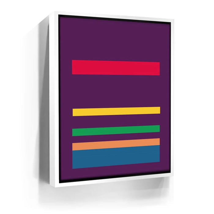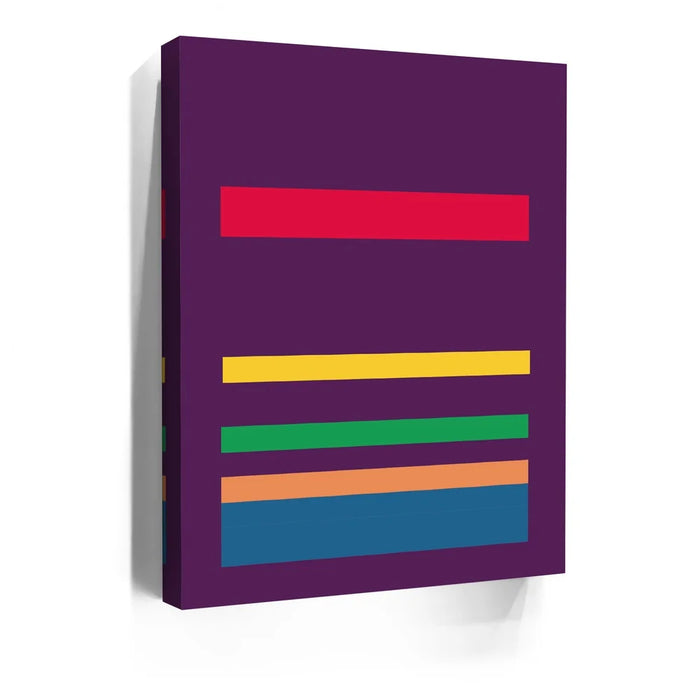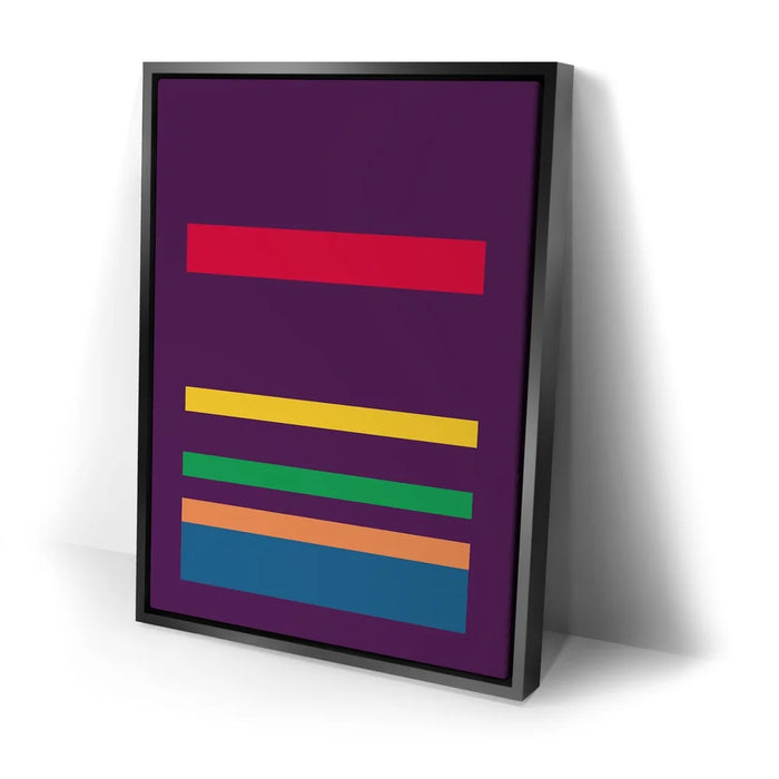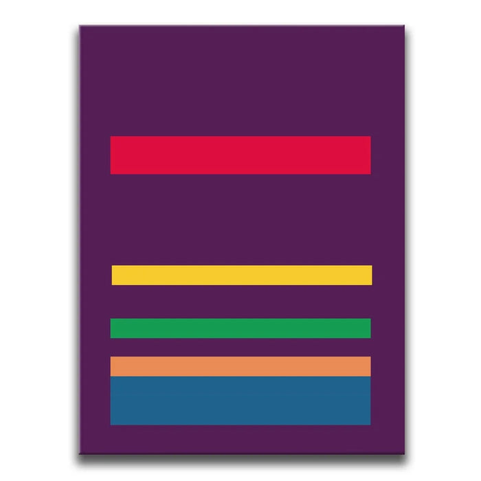 This minimalist abstract piece by George Rosaly features a striking composition of horizontal lines in vibrant colors such as red, yellow, green, orange, and blue, set against a bold purple backdrop. The clean and simple arrangement of colorful stripes evokes a sense of balance and order, while the deep hues of purple provide a contrast that enhances the artwork’s visual appeal. The minimalism in this piece reflects modern artistic trends, making it a timeless statement in any setting.