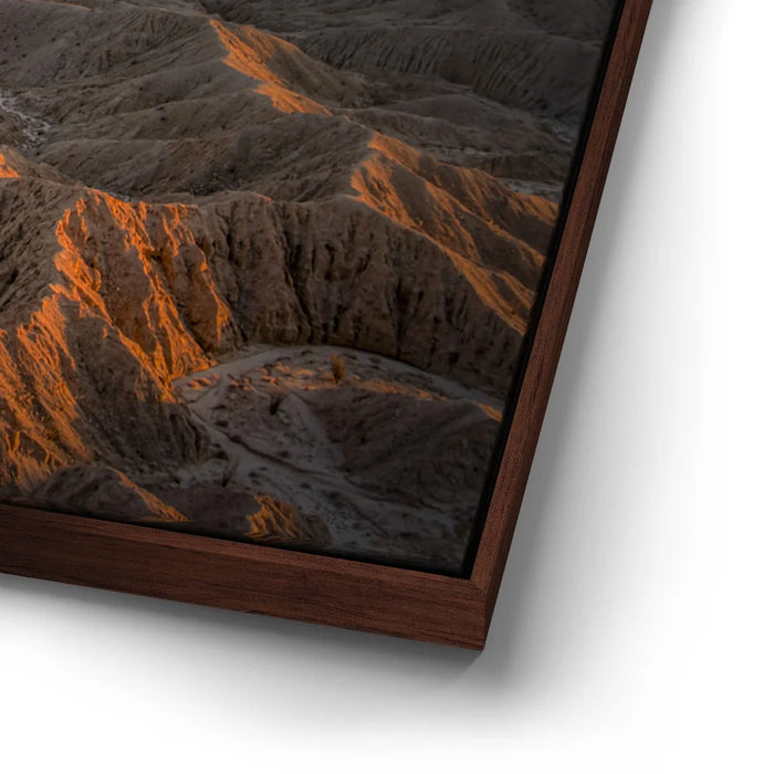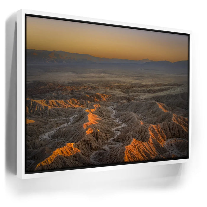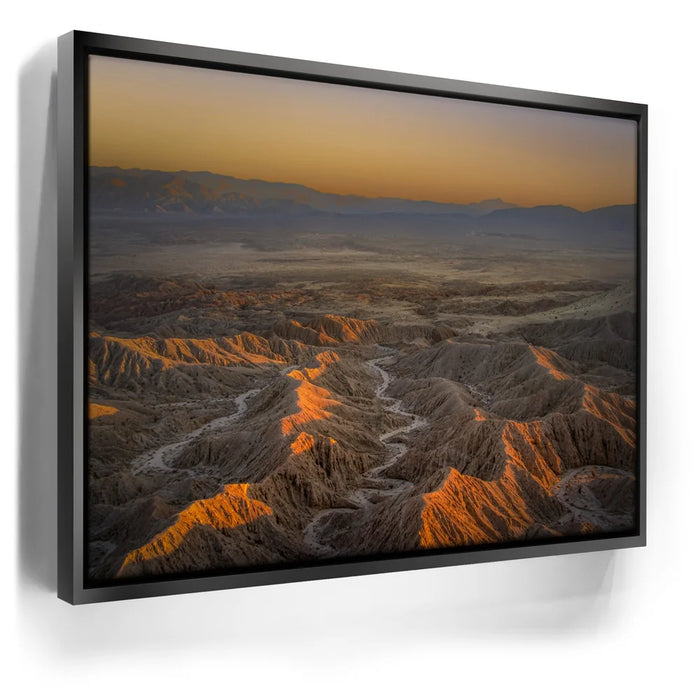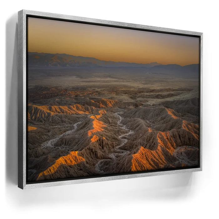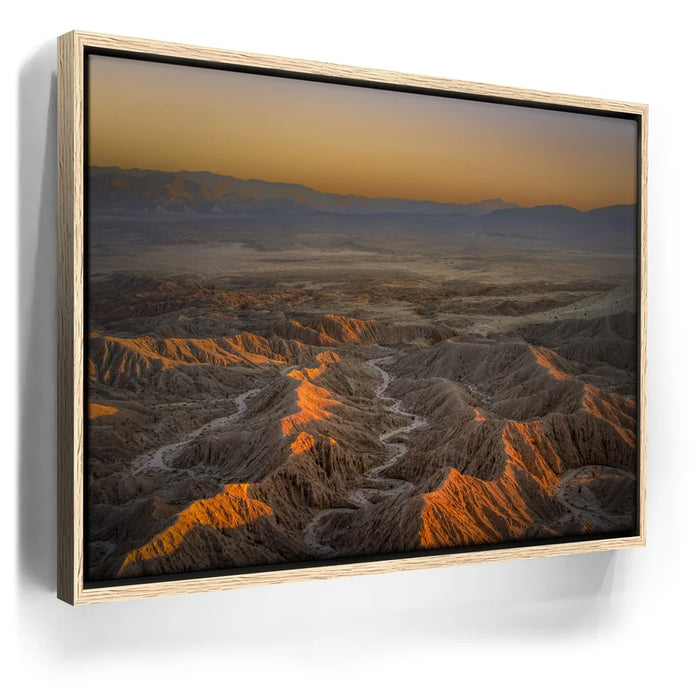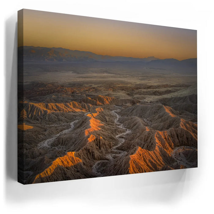 The vastness of the mountain valley and surrounding desertscape evoke a sense of tranquility and timelessness. Ideal for living rooms or bedrooms, this serene photograph brings the natural beauty of the desert into your space.