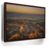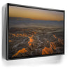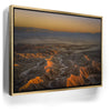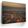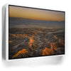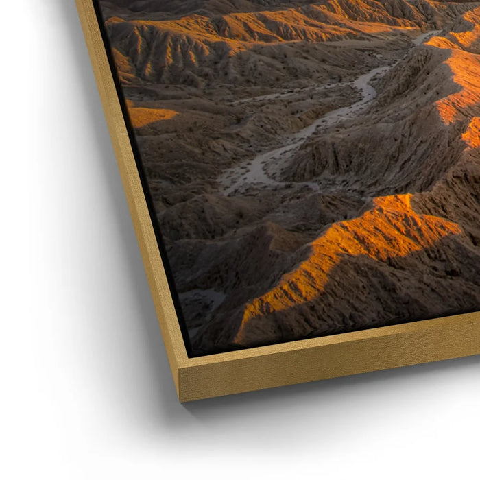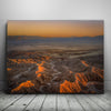 This stunning piece, "A Desert Sunset," captures the awe-inspiring beauty of the desert landscape as the sun sets over the mountain range. Warm golden light illuminates the rugged desert mountains, casting long shadows and highlighting the intricate contours of the terrain.