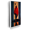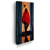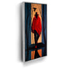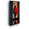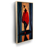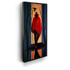 “A Door, A Man, A Bird” by Kandise King is a striking piece that blends minimalism with mystery. The bold figure cloaked in red emerges from a glowing doorway, staff in hand, as a black bird soars overhead. The stark contrasts of color and shadow evoke themes of passage, transformation, and silent guardianship.