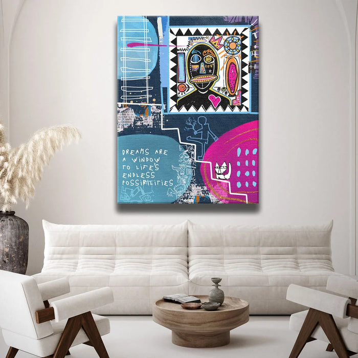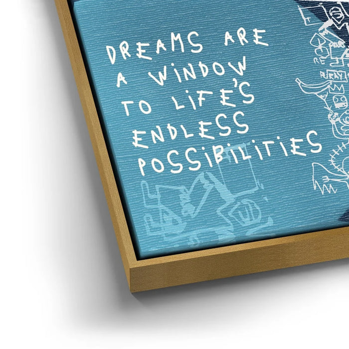 With inspiring words like "Dreams are a window to life's endless possibilities," this motivational piece celebrates creativity, potential, and the power of dreams. Its playful yet profound design is perfect for spaces that encourage reflection, positivity, and self-expression.
