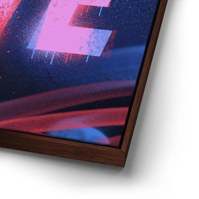 The typography is accentuated by dripping paint and splattered textures, adding a raw, expressive energy to the artwork. This piece is a powerful visual representation of contrasting emotions, making it a compelling addition for those who appreciate the intersection of words and art, with a touch of urban edge and calligraphy-inspired design.