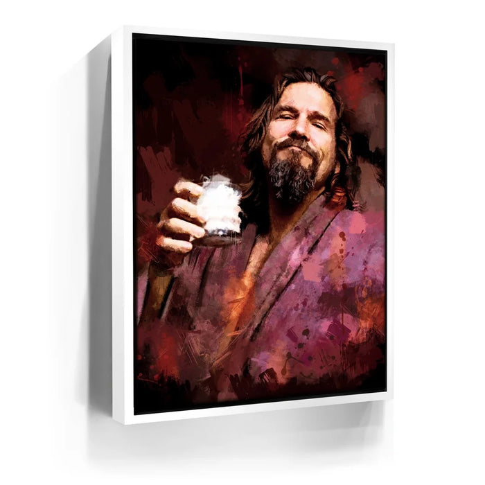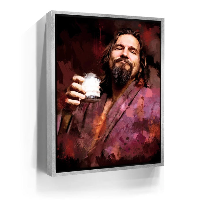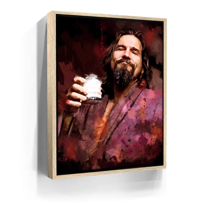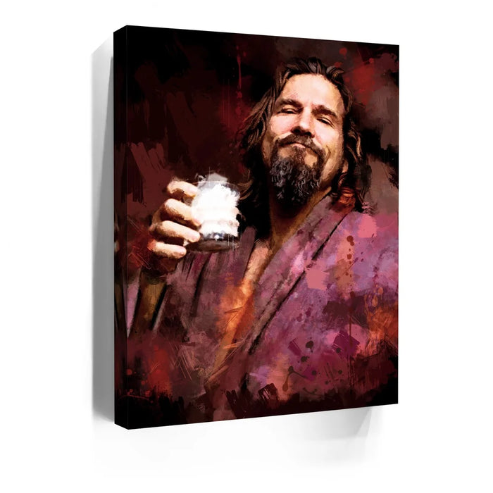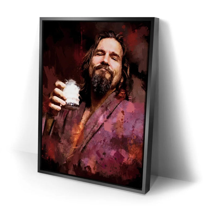 The textured, painterly style with rich, warm tones highlights his characteristic beard and mustache, adding depth and personality to the composition. This artwork is perfect for fans of classic movies and those who appreciate the timeless coolness of The Dude, making it a standout piece in any collection dedicated to iconic cinematic moments.