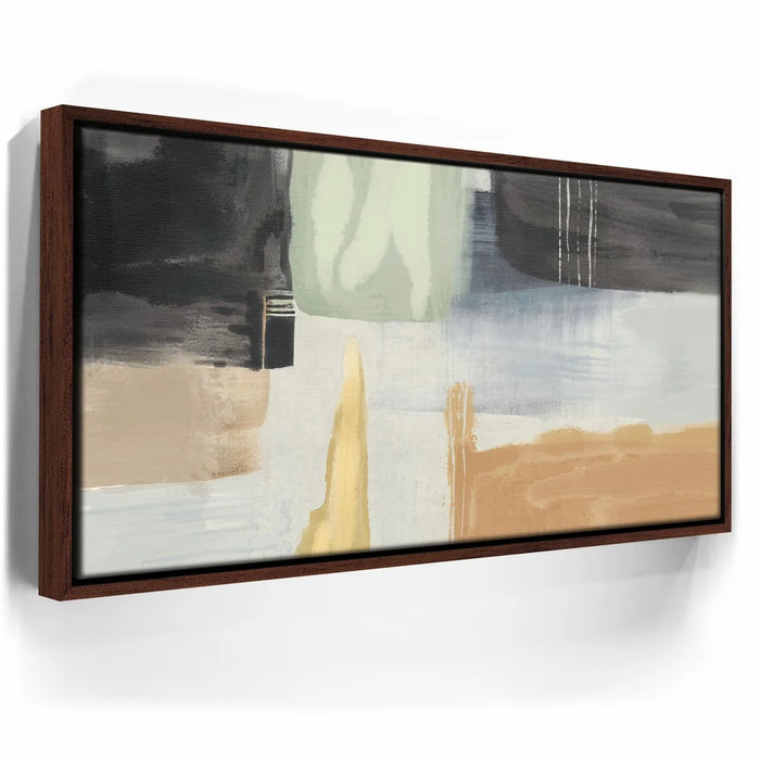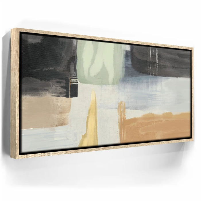 "Abstract Dreams 1" drifts through a calming blend of earth tones, misty pastels, and soft, painterly textures. Layered brushstrokes of sage green, sand, charcoal, and ivory create a tranquil modern landscape—perfect for elevating minimalist or Scandinavian interiors.