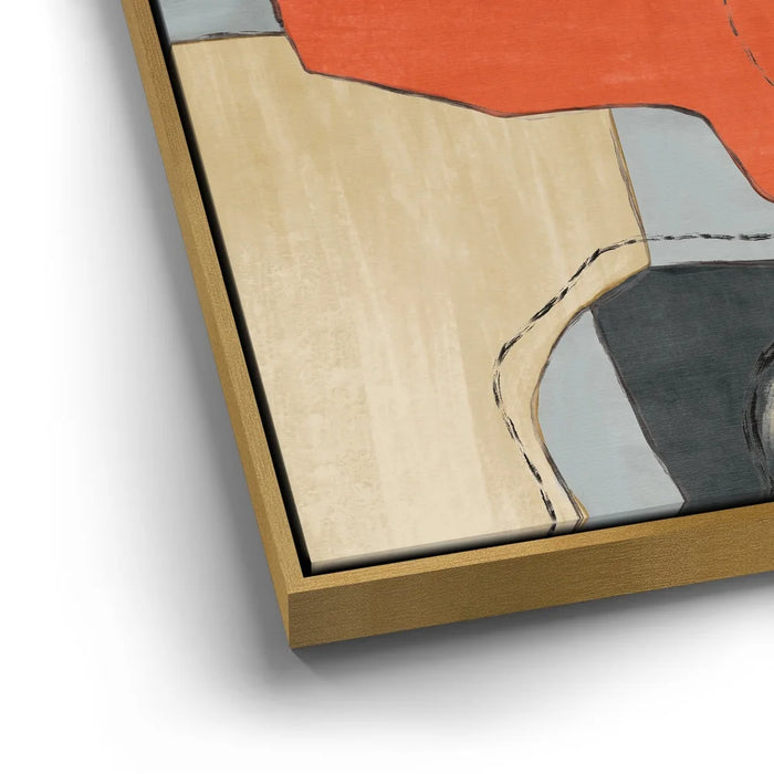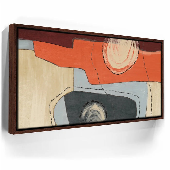 Ideal for retro-inspired spaces or contemporary interiors craving a bold color moment. Keywords: mid-century abstract art, terracotta and blue wall print, geometric modern decor, retro orbit design, bold abstract canvas.