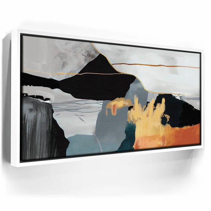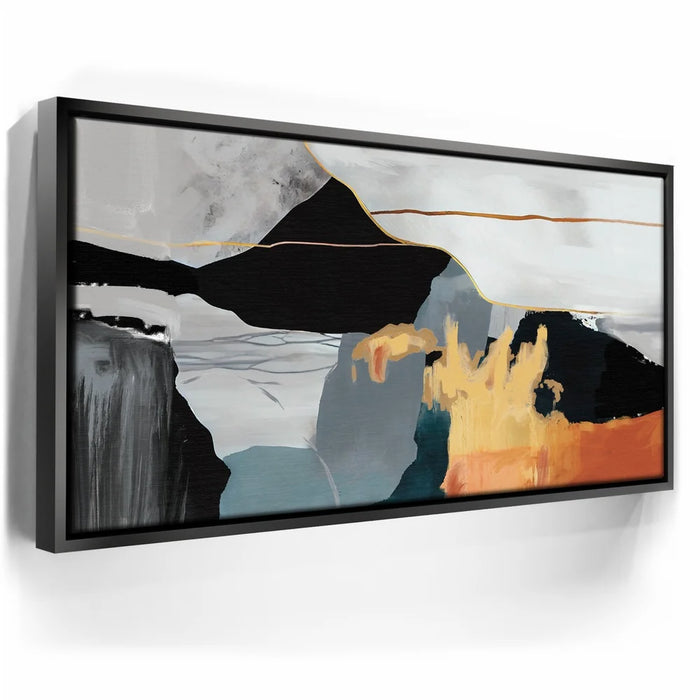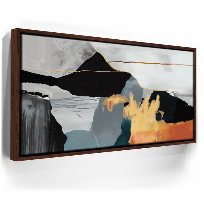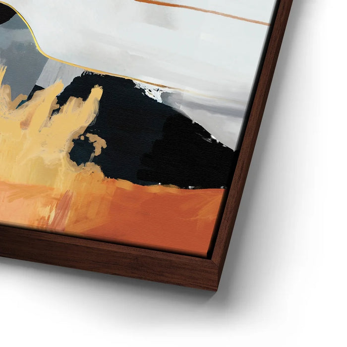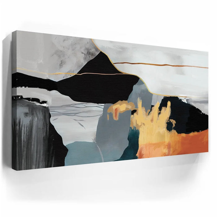 Perfect for modern boho or earth-toned interiors. Keywords: desert-inspired abstract, earthy color palette, modern landscape wall art, burnt orange and black canvas, canyon wall decor, golden accent abstract.