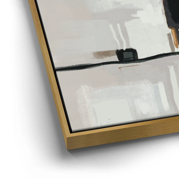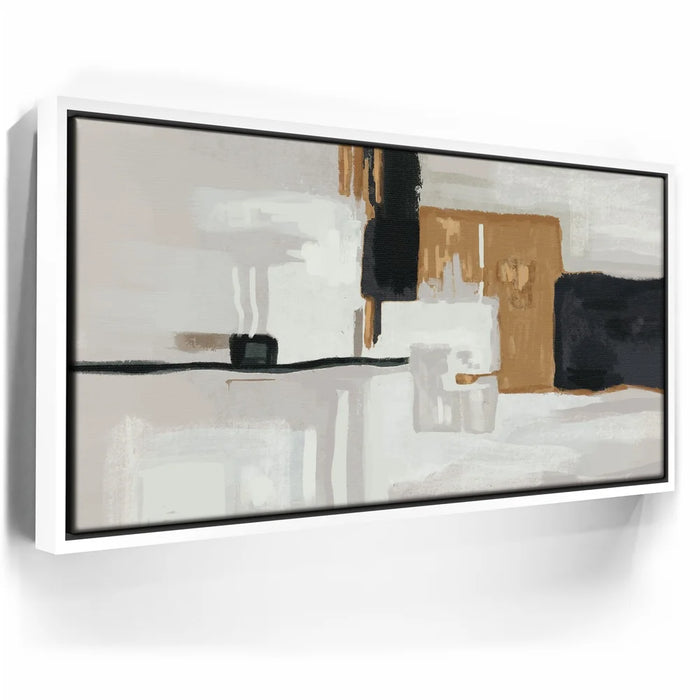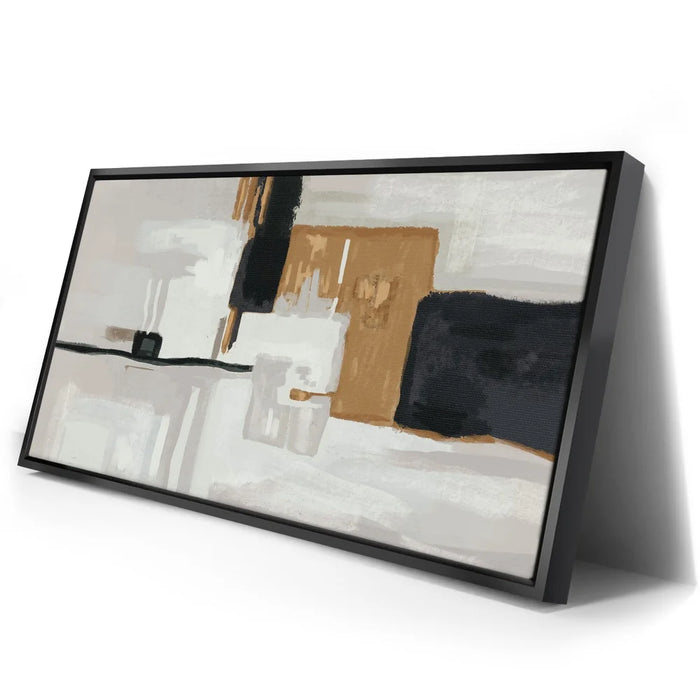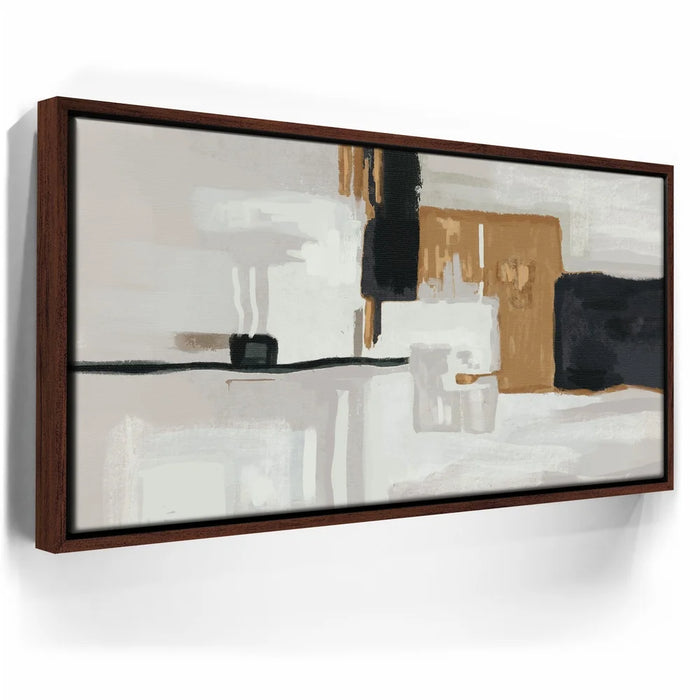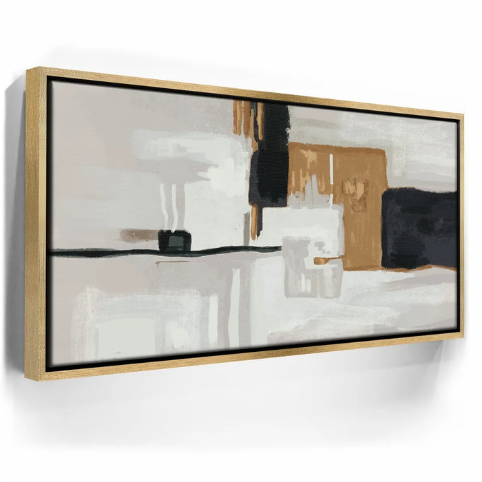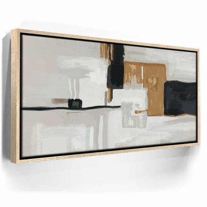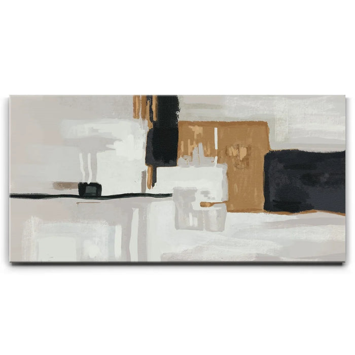 "Abstract Dreams 2" brings together creamy neutrals, golden tan, and charcoal in a clean, modern composition. Its textured brushwork and asymmetrical balance evoke a calm yet structured atmosphere, perfect for minimalist, Japandi, or contemporary interiors.