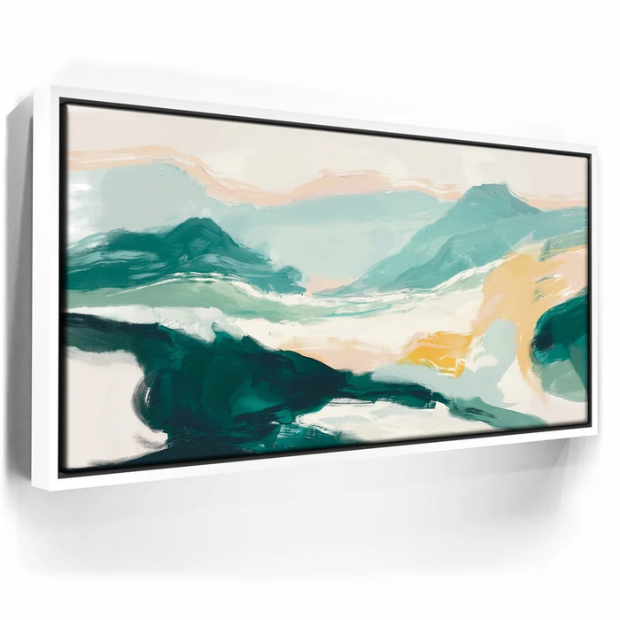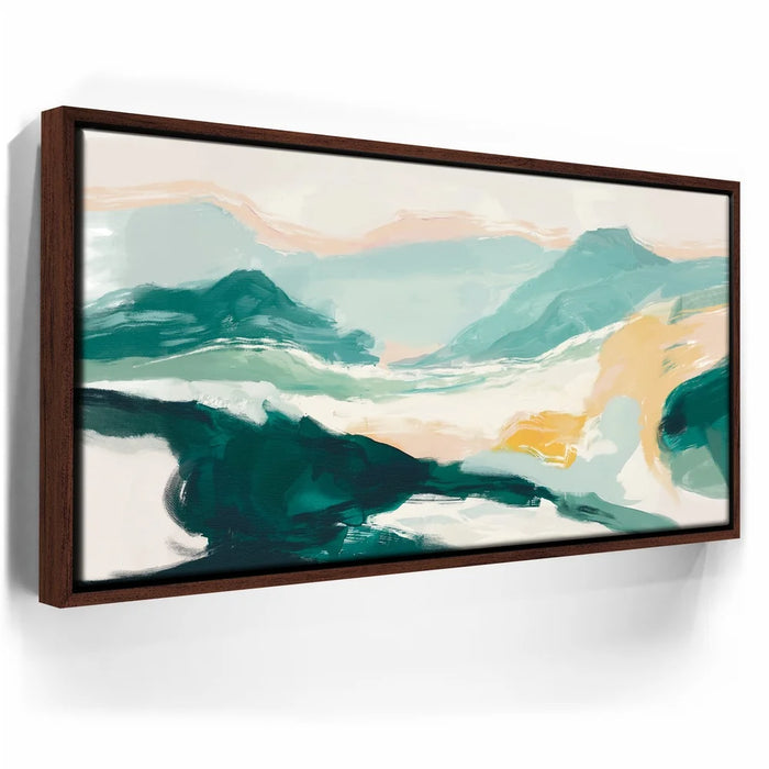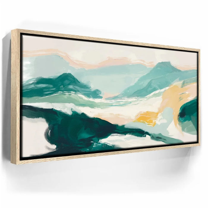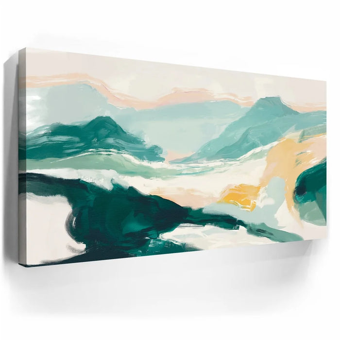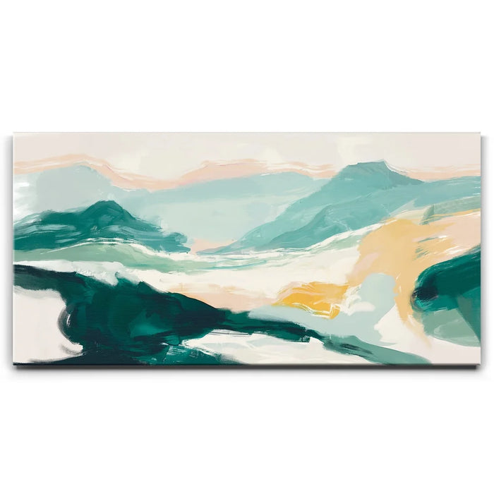 Perfect for those who crave calm with a touch of drama—ideal for bedrooms, meditation spaces, or airy studios. Keywords: abstract mountain landscape, soft green abstract art, calming brushstroke canvas, modern nature-inspired decor, pastel fluid artwork.