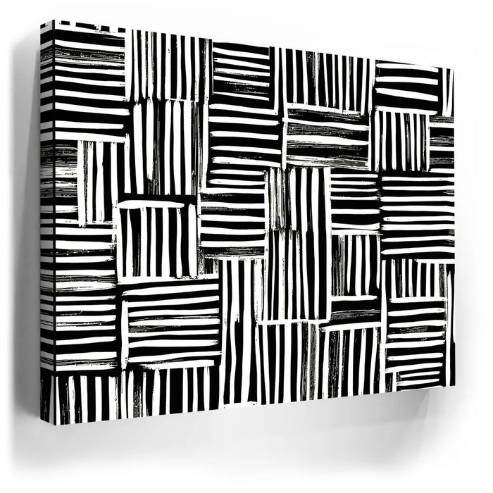 Abstract Framework explores rhythm and balance through a dynamic interplay of bold black and white lines. Each hand-drawn stroke creates a sense of structure within chaos — a visual dance of contrast, order, and movement. This minimalist yet energetic composition adds a modern edge to any space, celebrating the beauty found in simplicity and design precision.