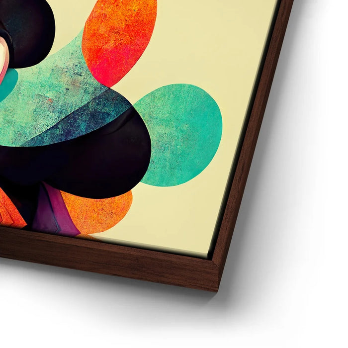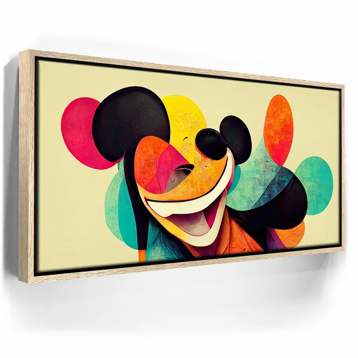 With its colorful layers and dynamic composition, this piece would make a striking addition to any kitchen or dining room, blending classic cartoon elements with contemporary abstract design. Perfect for fans of both Disney and abstract wall art, this artwork captures the essence of fun and creativity.