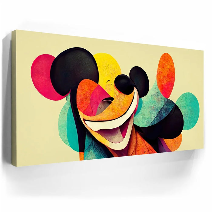 This vibrant geometric abstract art piece, titled "Abstract Goofy," reimagines the iconic Disney character in a Picasso-inspired style. The artwork features bold colors, playful shapes, and abstract patterns that bring Goofy to life in a modern, artistic form.