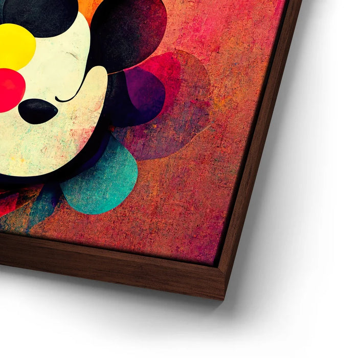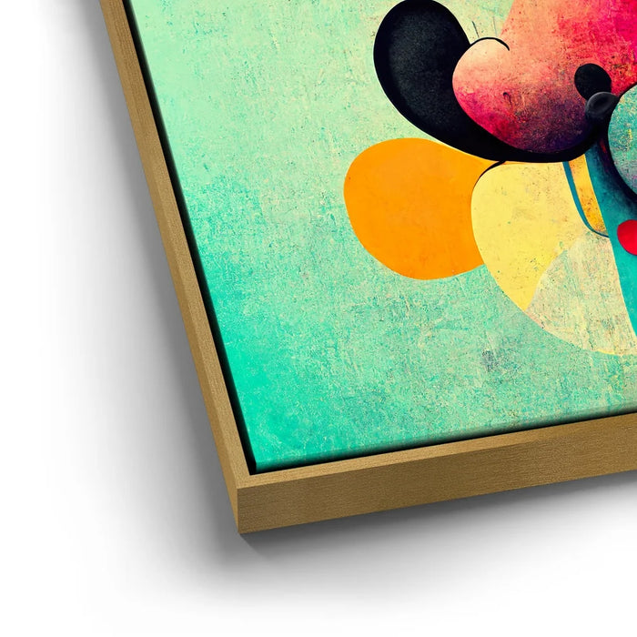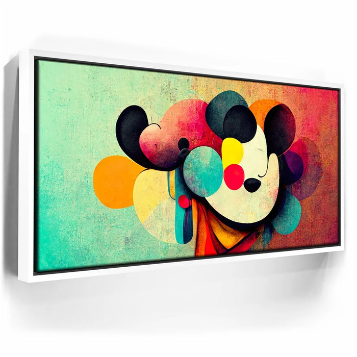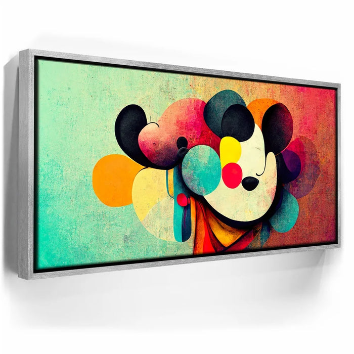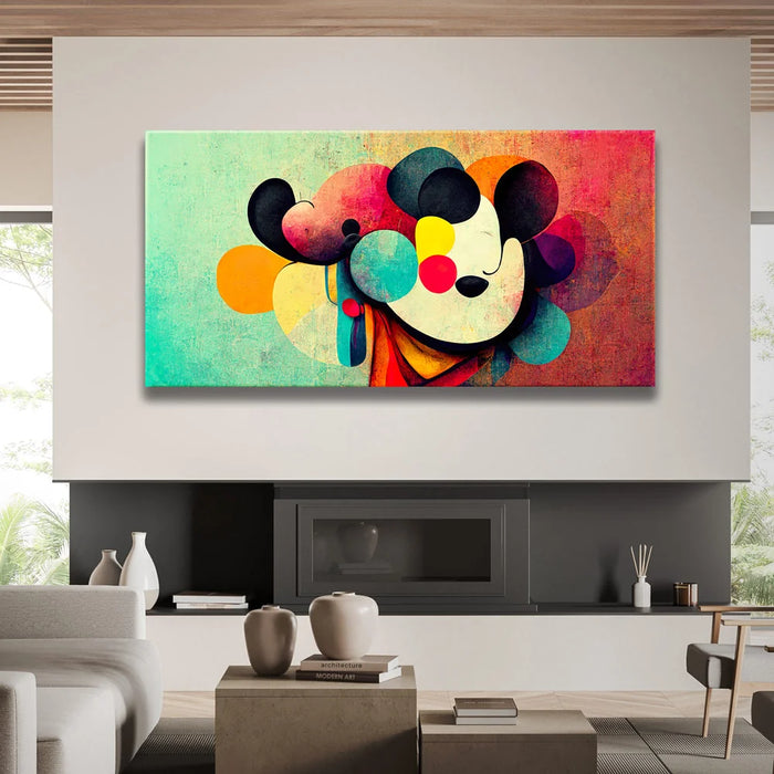 This abstract artwork, "Abstract Mickey," brings together the iconic character of Mickey Mouse with a geometric and Picasso-like twist. Vibrant colors and overlapping shapes give it a modern, abstract flair, making it a playful yet sophisticated addition to any room.