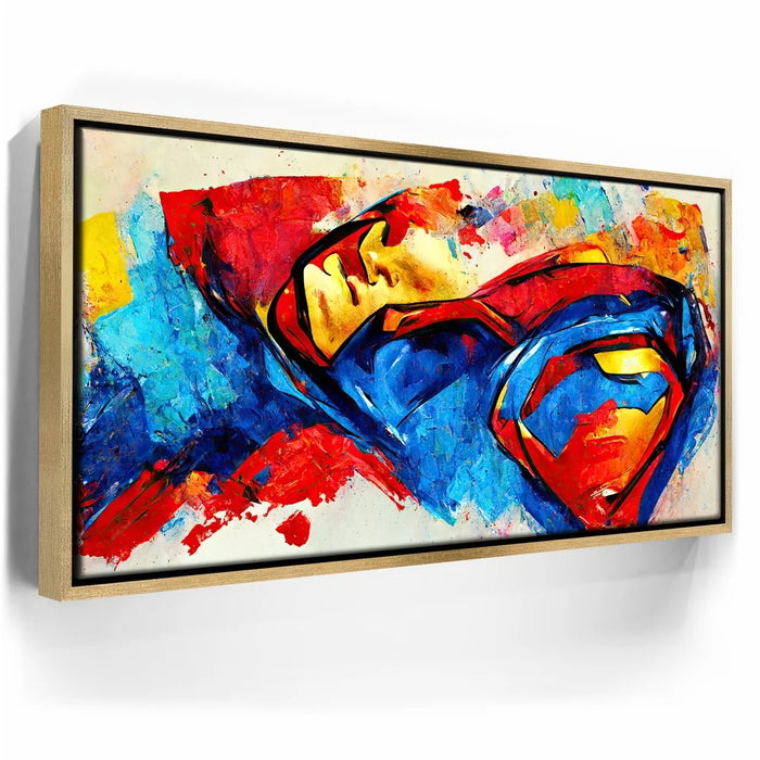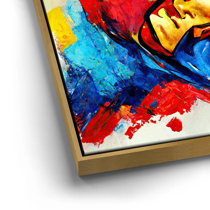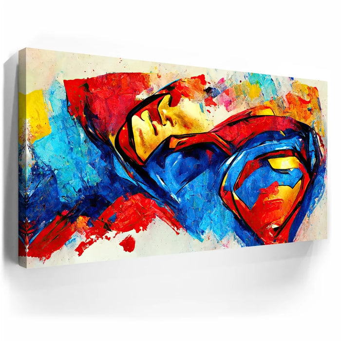 This vibrant, abstract rendition of Superman uses bold brushstrokes and dynamic colors to reinterpret the iconic superhero in an expressive, energetic style. The overlapping layers of red, blue, and yellow capture the essence of Superman's classic costume while giving it a modern twist.