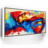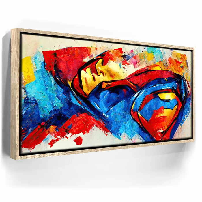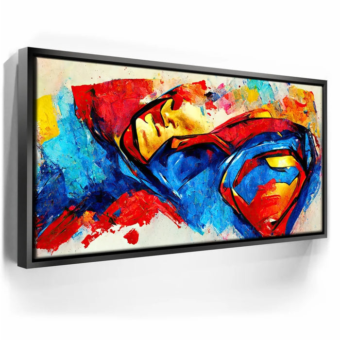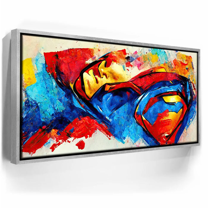 The playful use of color splash and abstract form adds depth to the piece, making it a standout representation for any comic book fan or abstract art enthusiast. Ideal for spaces seeking a pop of color and superhero inspiration, this artwork brings energy and creativity to life on canvas.
