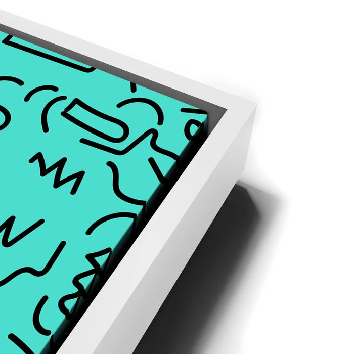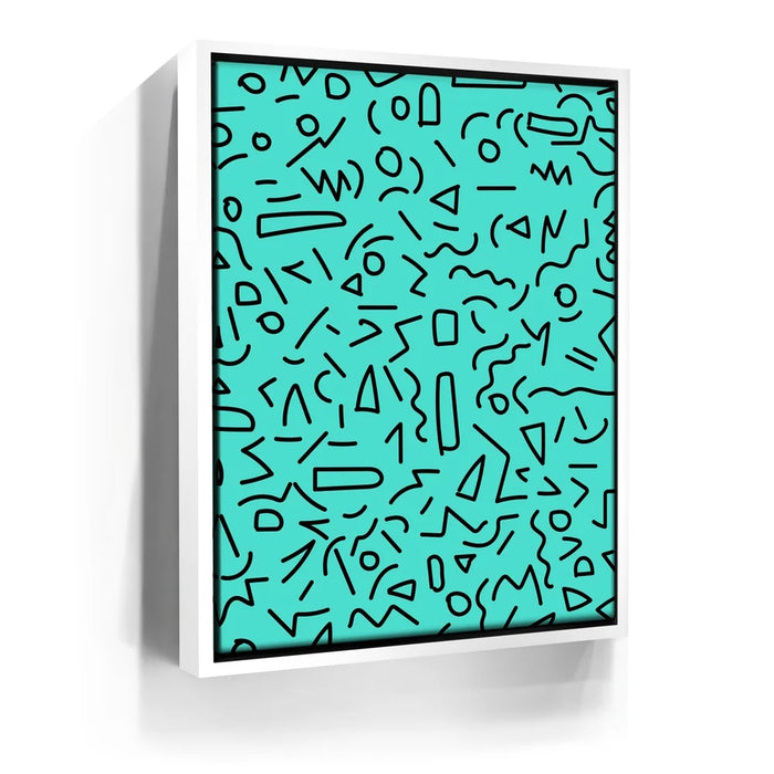 Add a touch of 90's-inspired flair to your space with minimalist abstract art in striking turquoise and teal tones. "All That! (Part II)" blends clean lines and geometrical shapes, creating a bold yet simple design perfect for modern decor. This abstract wall art captures the essence of minimalism, using sleek lines and shapes to evoke a sense of calm and balance.