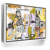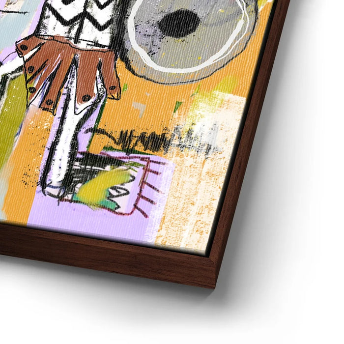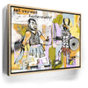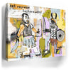The chaotic and dynamic strokes add energy, while the eclectic mix of pastel and saturated hues creates an engaging contrast. This work stands as a tribute to Basquiat's influence, blending historical imagery with modern street art aesthetics. It would make a unique and motivational piece for an office or creative space.