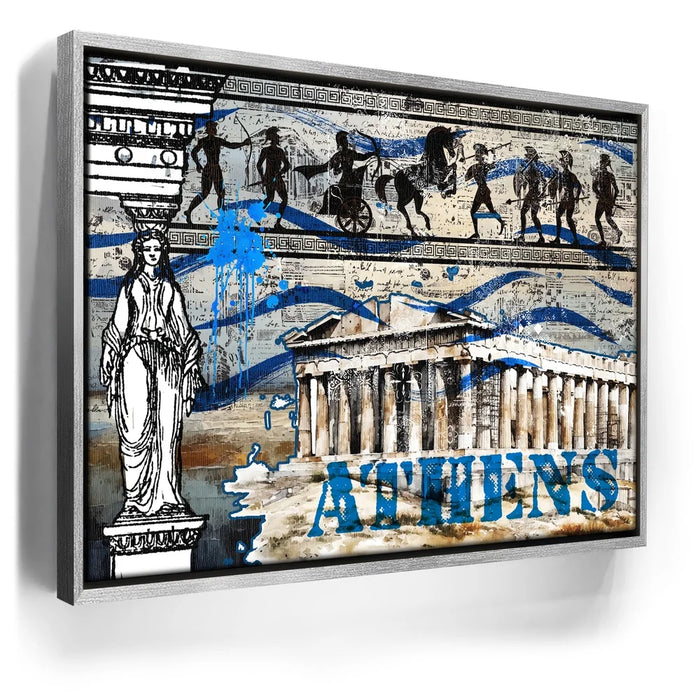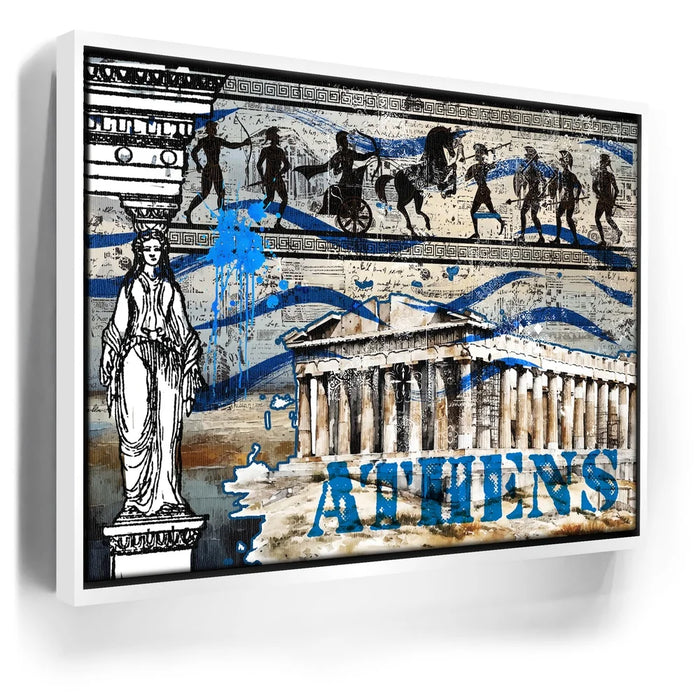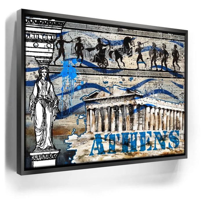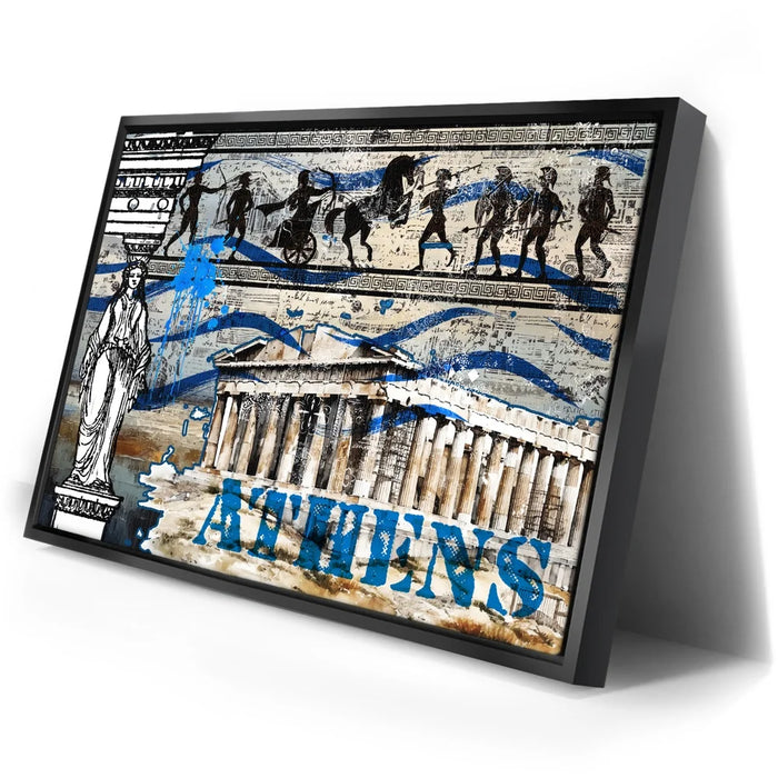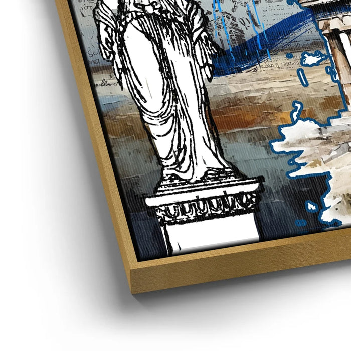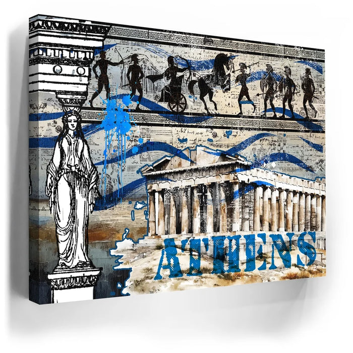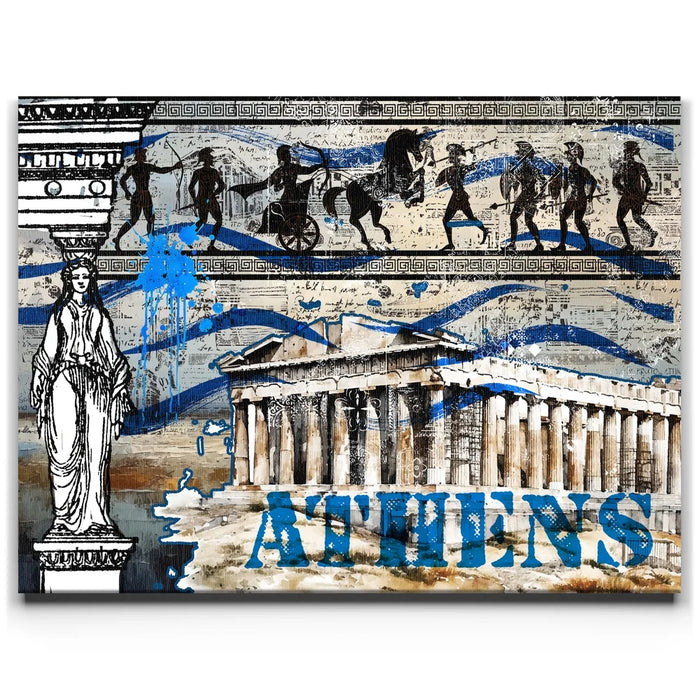 "Athens Collage" is a vibrant tribute to the rich history and cultural legacy of ancient Greece. Featuring iconic imagery of the Parthenon, classical Greek figures, and traditional patterns, this piece captures the essence of Athenian heritage. Bold blue splashes and layered textures bring a contemporary twist, celebrating the timeless spirit of Athens through a modern artistic lens. Perfect for lovers of history, architecture, and classical art, this collage breathes new life into the ancient world.