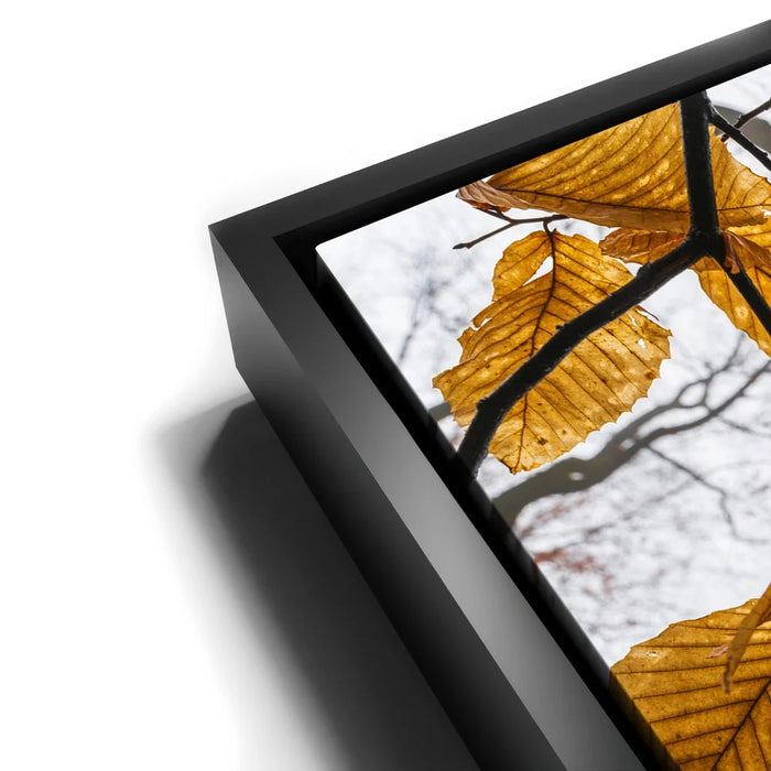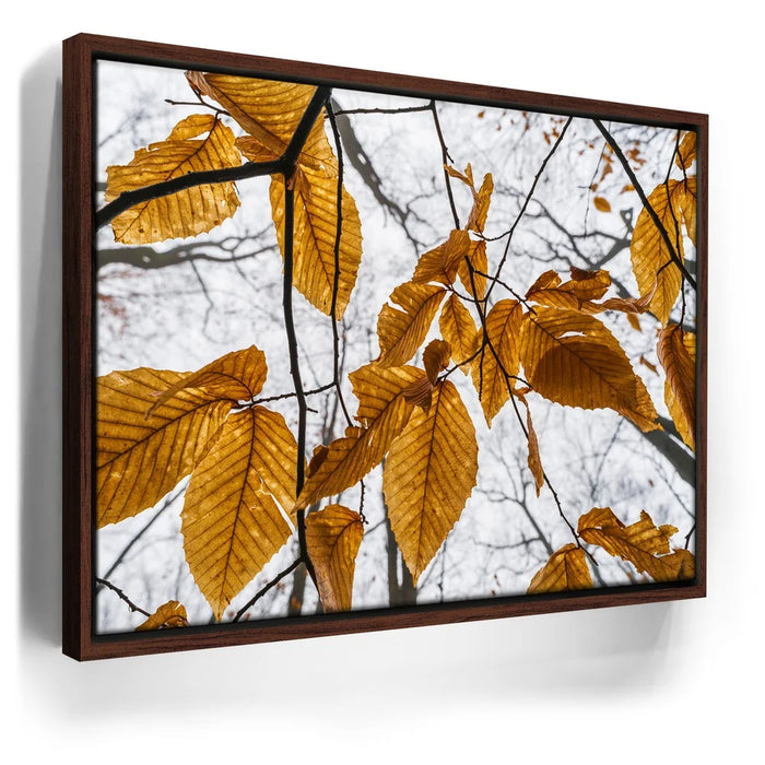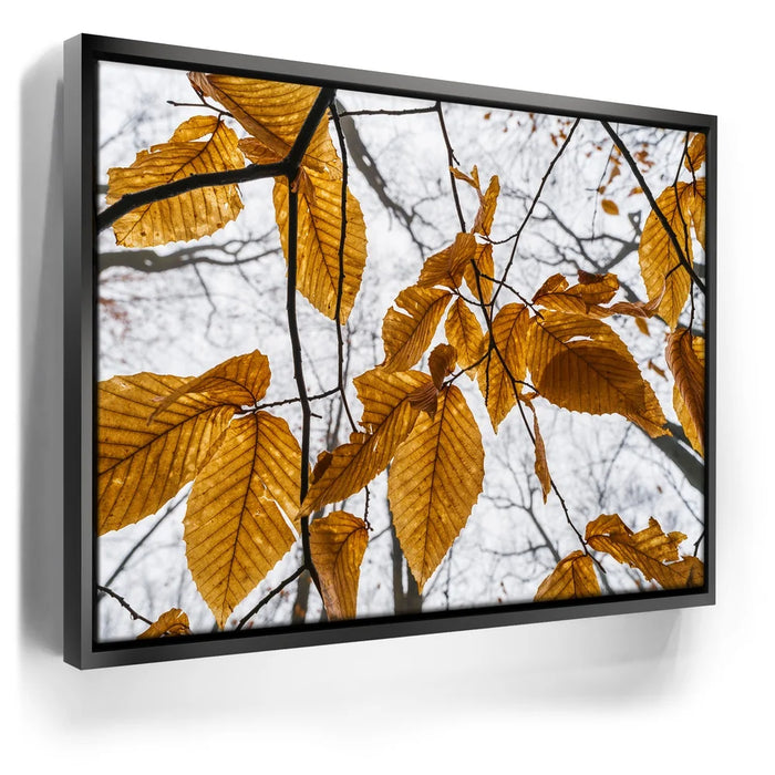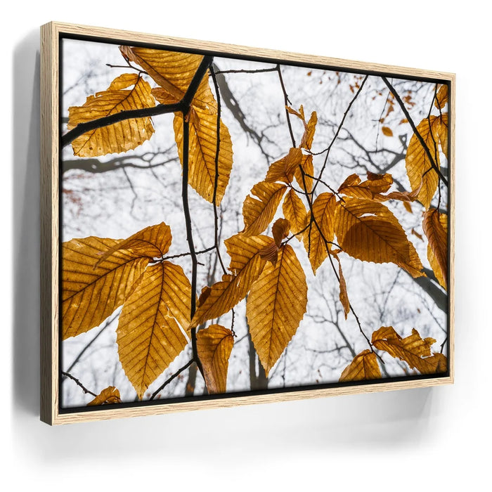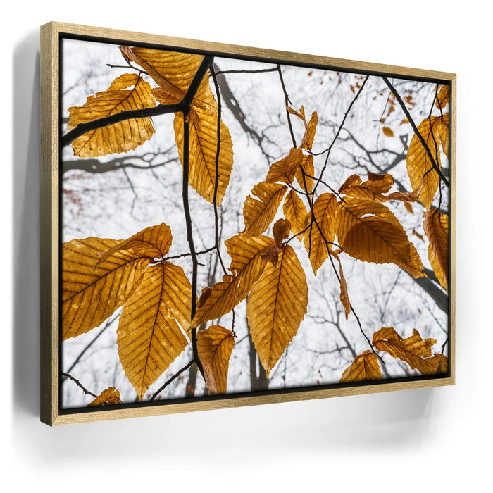 "Autumn Veins" by Barbarossa captures the intricate detail of golden leaves illuminated against a pale winter sky. Each vein and edge is revealed in striking clarity, showing the delicate structure that sustains life through the changing seasons.