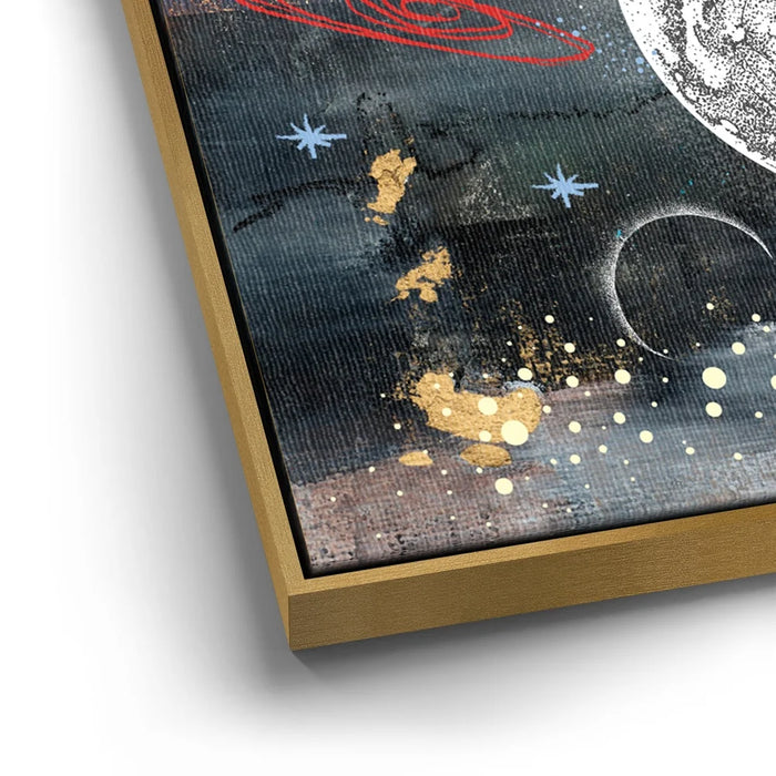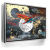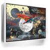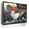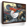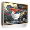 “Beacon of Hope” reimagines Superman not only as a comic book hero but as a symbol of human aspiration. Painted against a cosmic backdrop, the hero soars past moons, planets, and galaxies, his red cape cutting boldly across the darkness. The celestial textures—splashes of gold, swirling galaxies, and planetary detail—contrast with the clean comic lines of Superman, merging pop art with the timeless mystery of the universe. It’s not just about flight; it’s about elevation, rising above limitation, and becoming larger than life.
