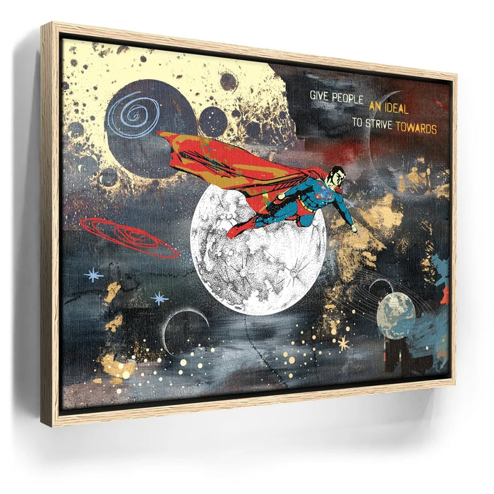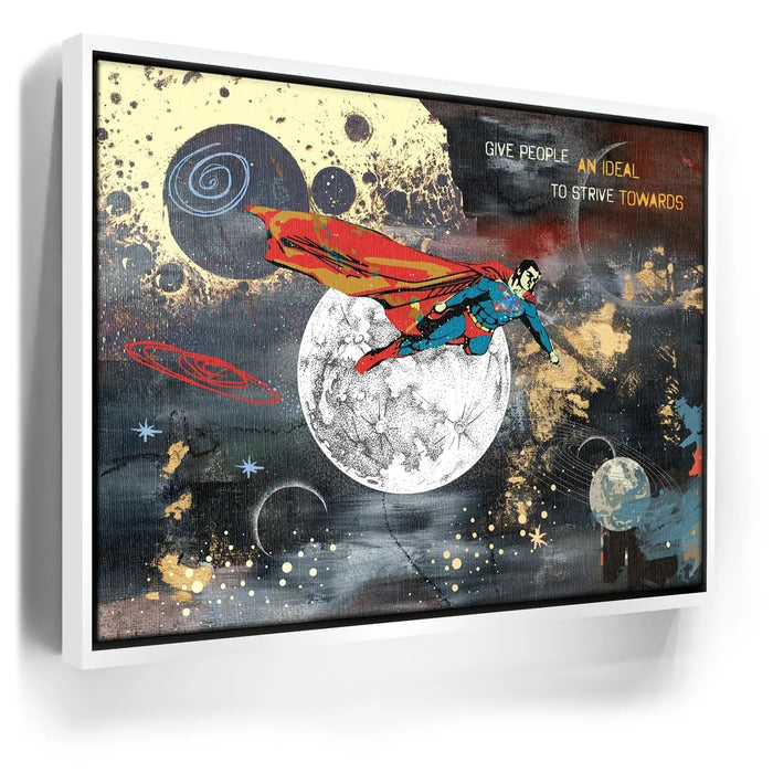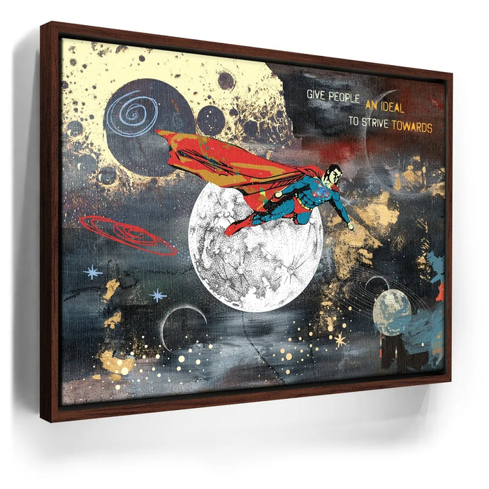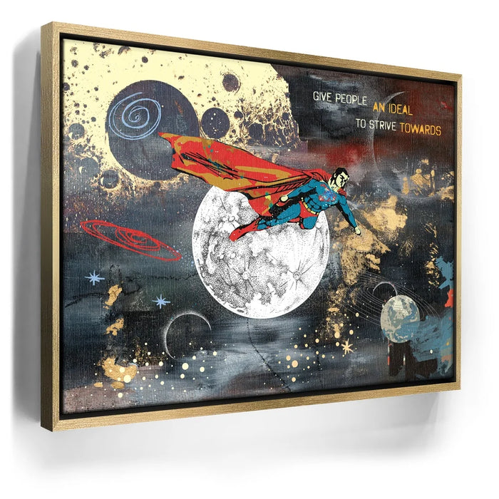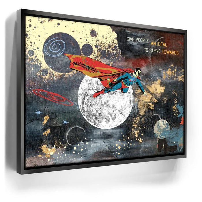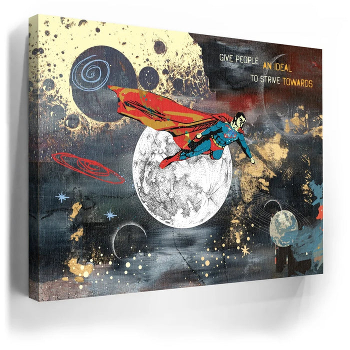 The words “Give people an ideal to strive towards” crystallize the message. This piece isn’t only about Superman but about what he represents: resilience, justice, and hope. The art suggests that ideals are what hold societies together, what inspire individuals to keep pushing forward. It captures the notion that in the vastness of existence, one bright figure—or one bold act—can guide countless others. “Beacon of Hope” is a visual mantra, reminding us that heroes, fictional or real, exist to show what’s possible.