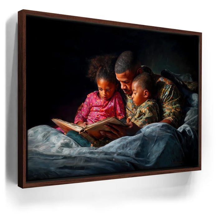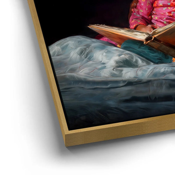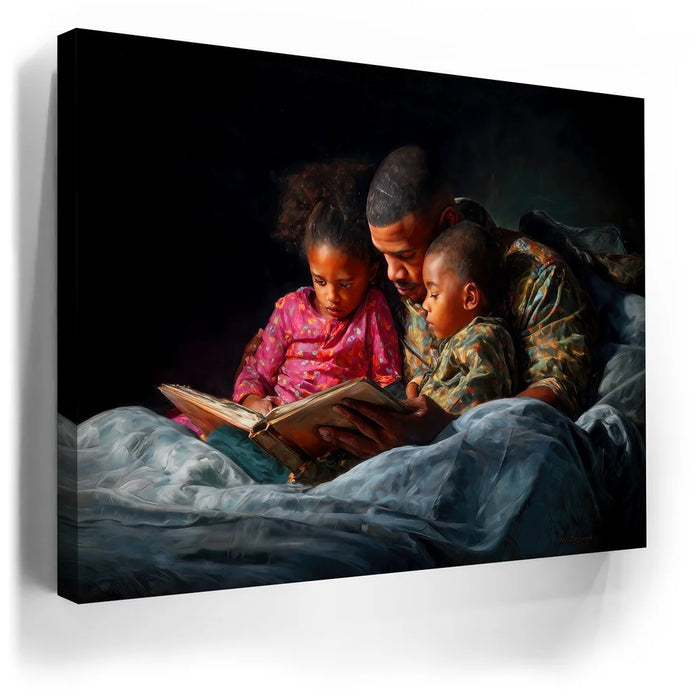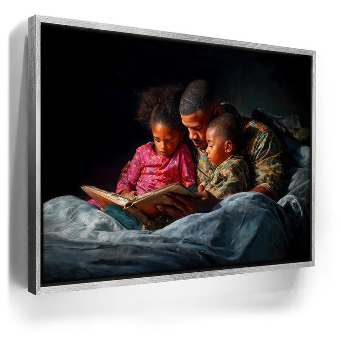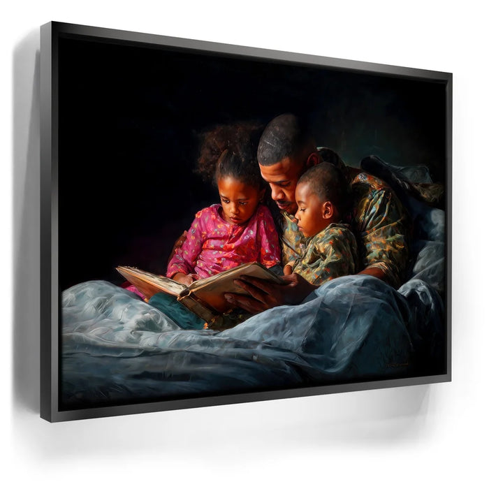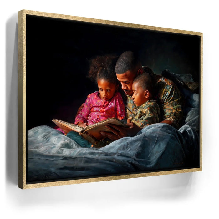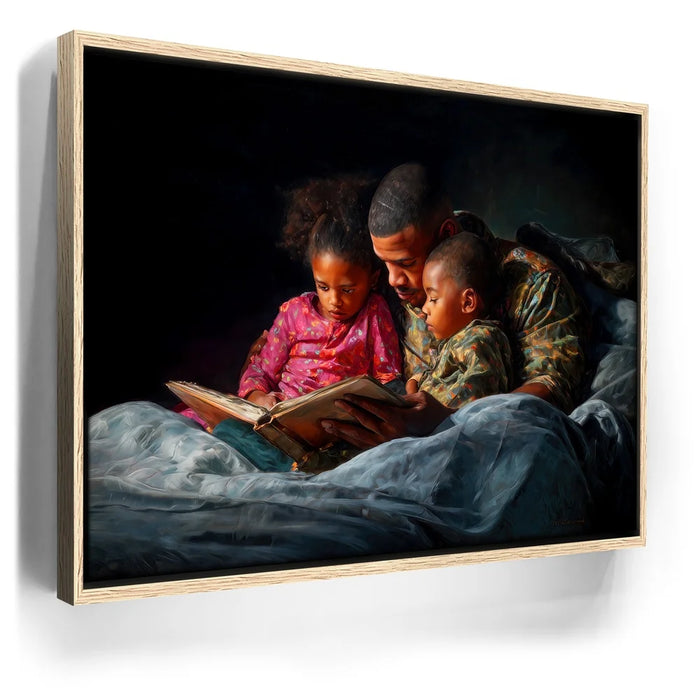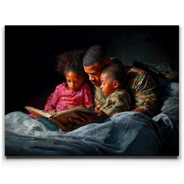 Perfect for bedrooms, family rooms, or cozy living spaces, this heartfelt artwork brings comfort and nostalgia into any setting. "Bedtime Bond" is a timeless celebration of love, storytelling, and the unbreakable bond between parent and child.