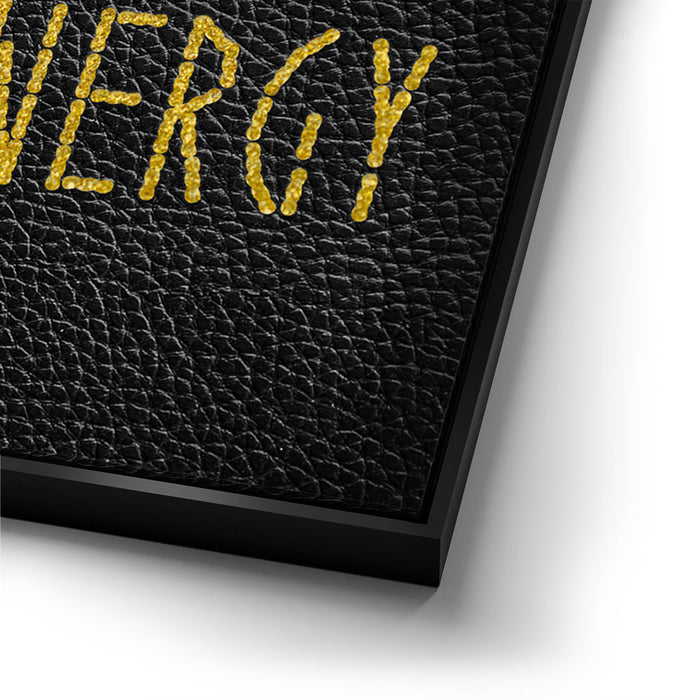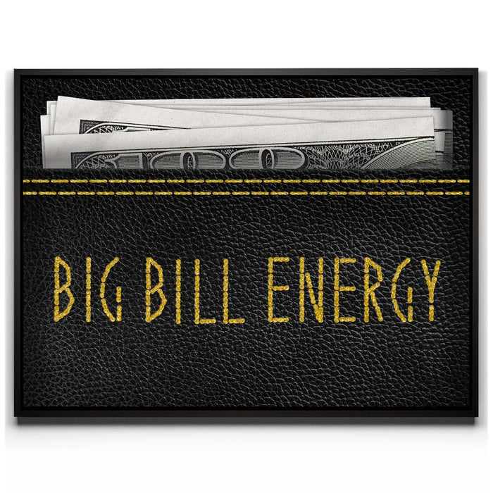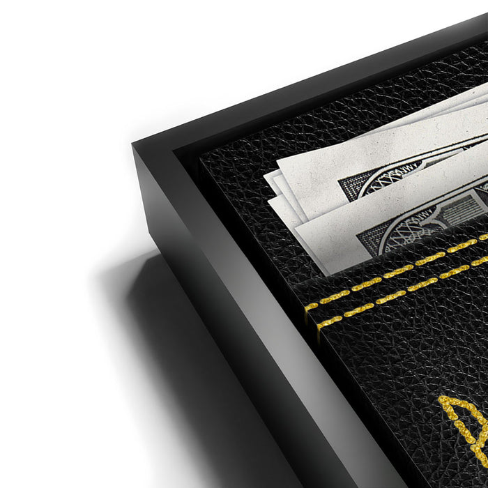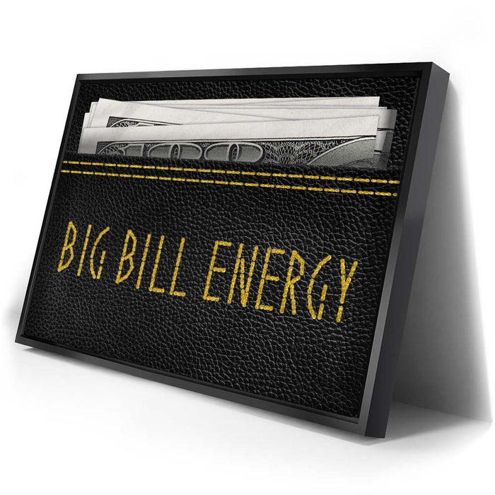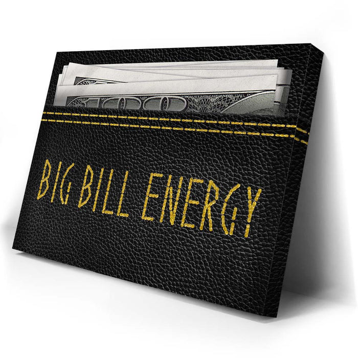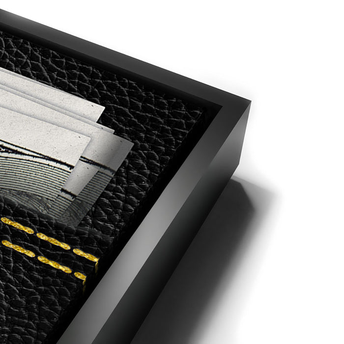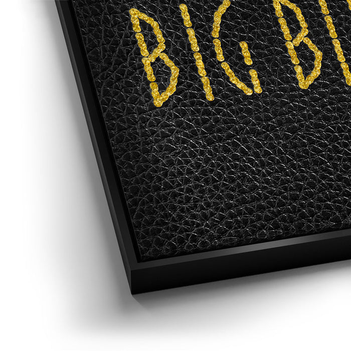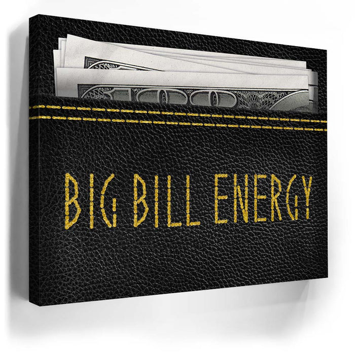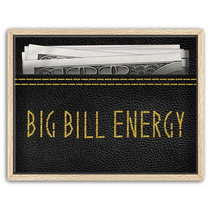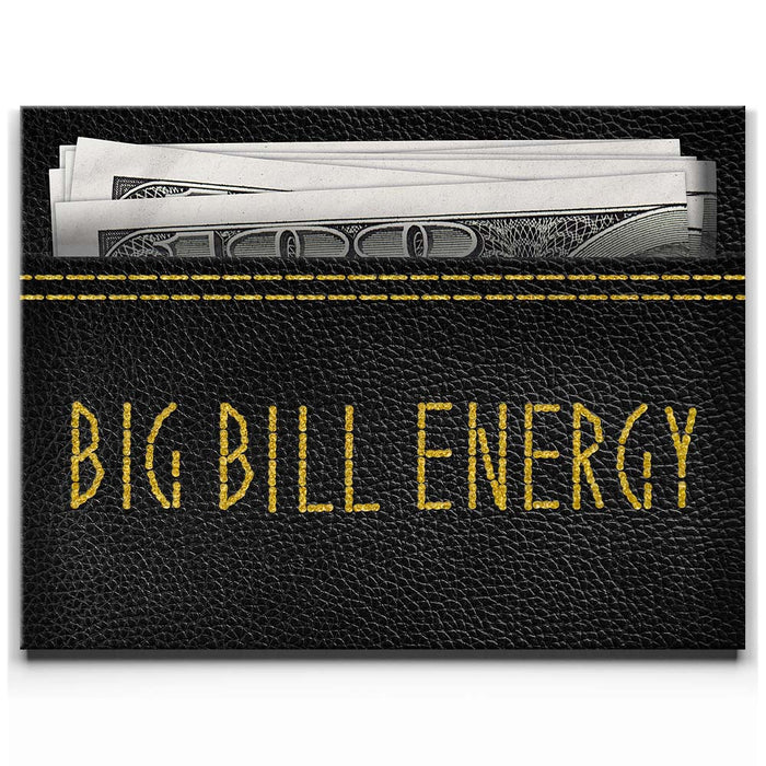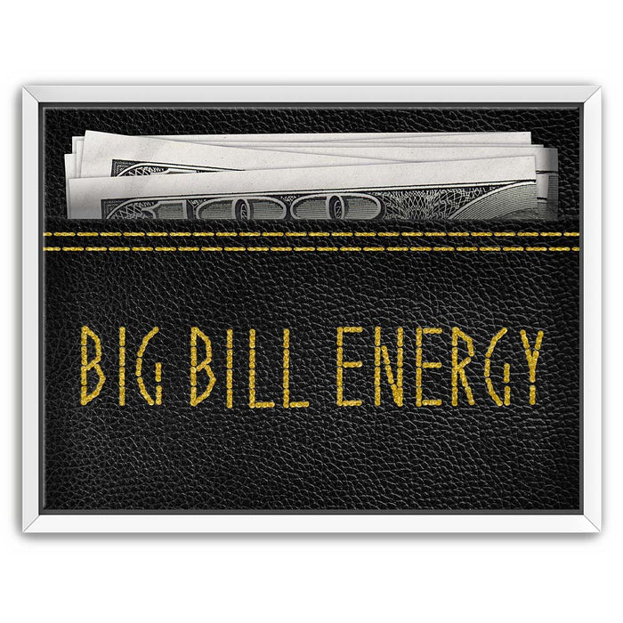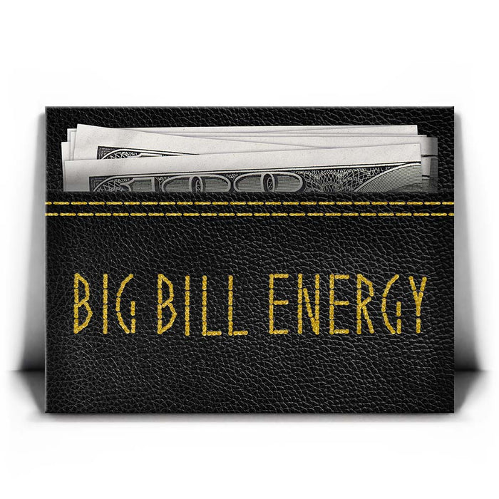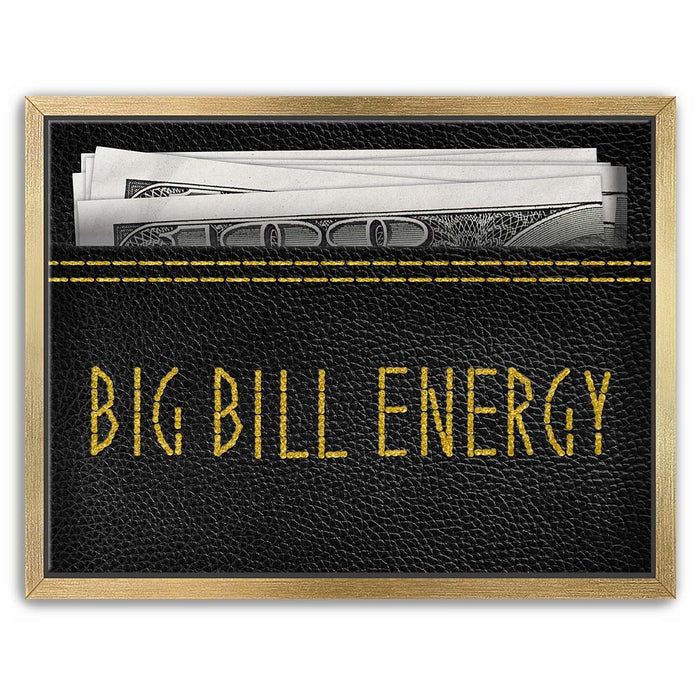 "Big Bill Energy - Gold Stitching" is a bold, statement-making artwork that exudes confidence and financial prowess. Featuring a sleek leather-textured background with gold stitching, this piece combines minimalist design with high-impact messaging, perfect for those who embrace a "go-getter" attitude in life. The tucked-in bills add a touch of realism, symbolizing wealth and ambition.