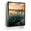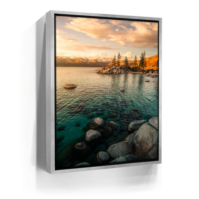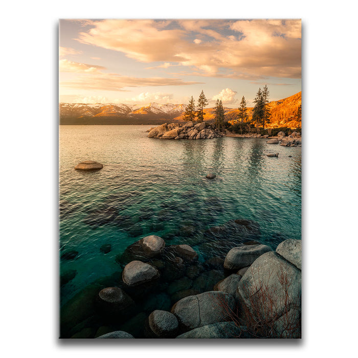 “Blue Serenity” by Daniel Heck captures the pristine stillness of Lake Tahoe as the setting sun paints the landscape gold. Crystal-clear waters reveal smooth boulders beneath the surface, while distant snowcapped peaks and silhouetted pines complete the dreamlike scene. It’s nature’s quiet symphony—one of reflection, clarity, and peace.