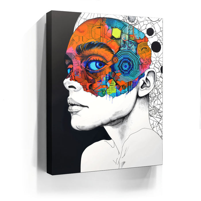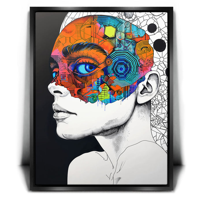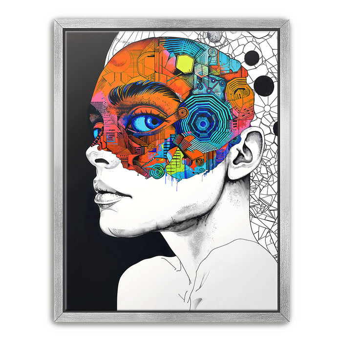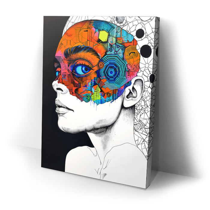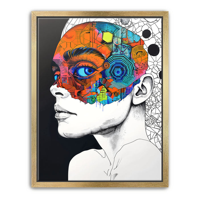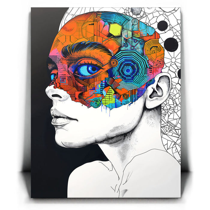 This artwork resonates with themes of innovation, technology, and introspection, making it an eye-catching addition to modern interiors. Perfect for admirers of digital art, futuristic aesthetics, and cerebral creativity, "Blueprint Of The Mind" offers a stunning visual representation of the limitless potential of human imagination and design.