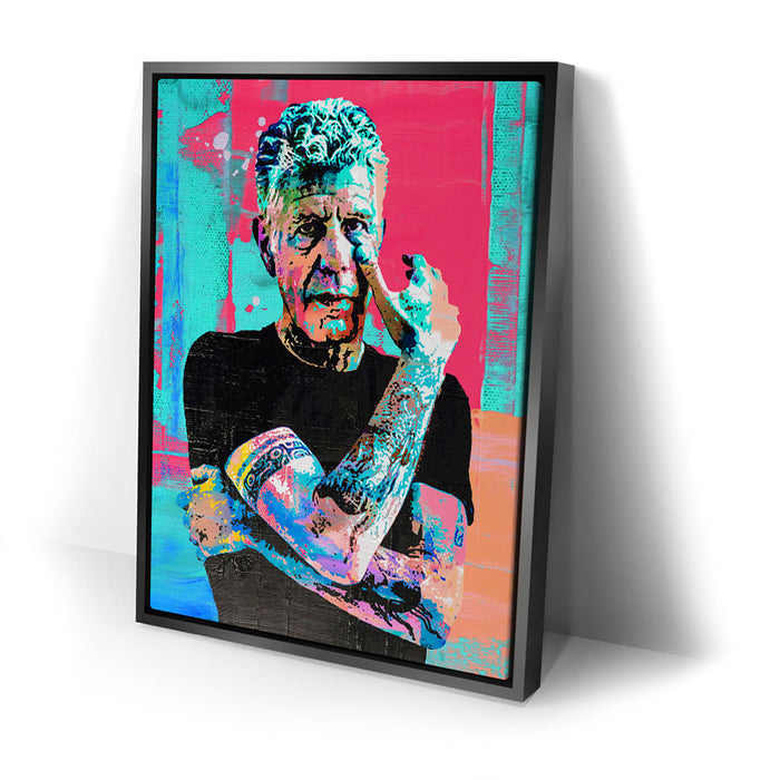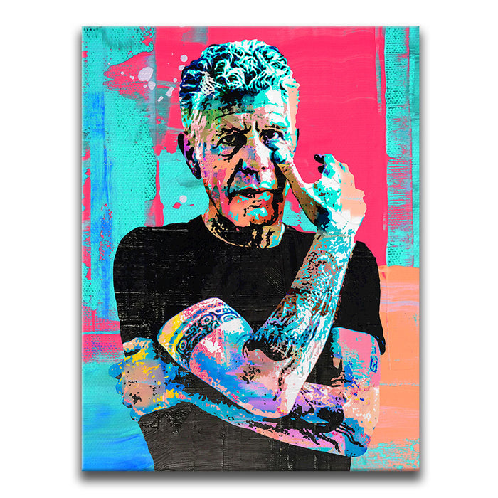Unleash the power of the unknown with our vivid design 'Embrace the Unfamiliar', a striking piece of art featuring the iconic Anthony Bourdain.