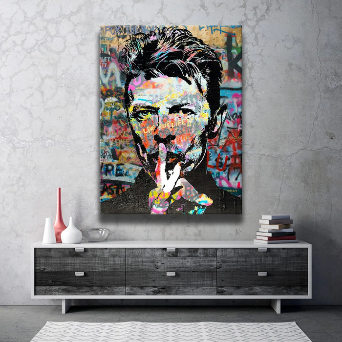 I am thrilled to introduce you to our mesmerizing “Bowie Graffiti Canvas Set” artwork, designed to captivate your imagination and ignite your passion for art and music.
