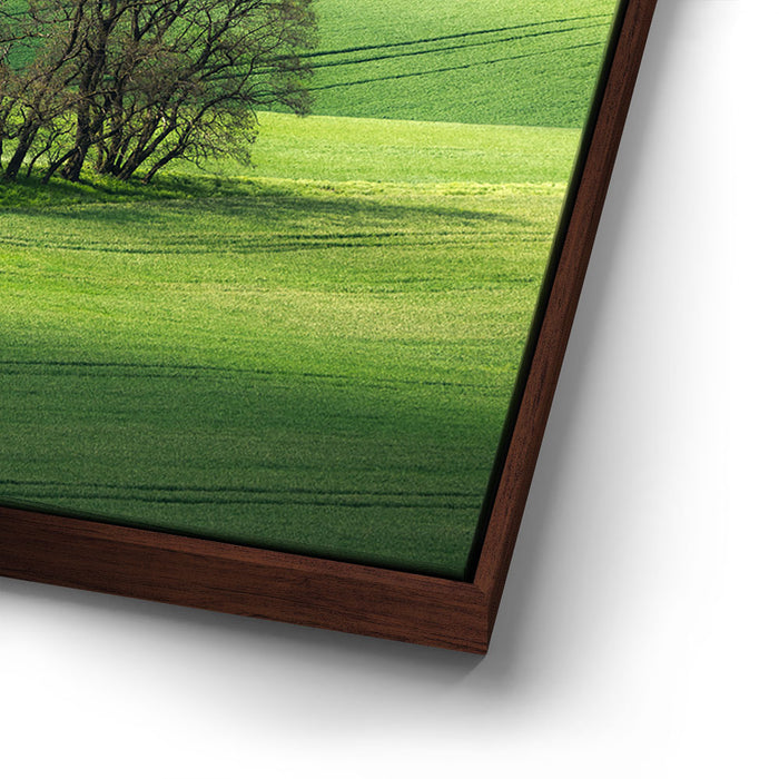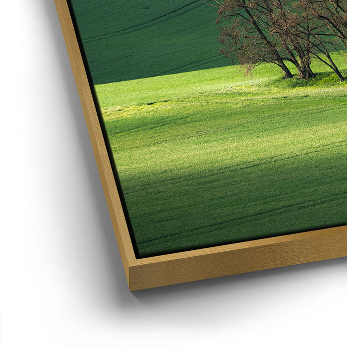 This landscape photography print brings a painterly quality to modern farmhouse or minimalist wall décor. Keywords: spring landscape photography, countryside wall art, green field nature print, rural serenity art, fine art landscape photo.
