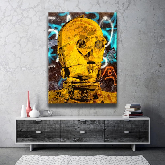 This canvas set is an ideal addition to any movie lover's space, adding a contemporary edge to the timeless appeal of Star Wars. Whether displayed in a living room, game room, or movie-themed decor, the "C-3PO Graffiti Canvas Set" brings together pop culture, nostalgia, and artistic flair in a unique way.
