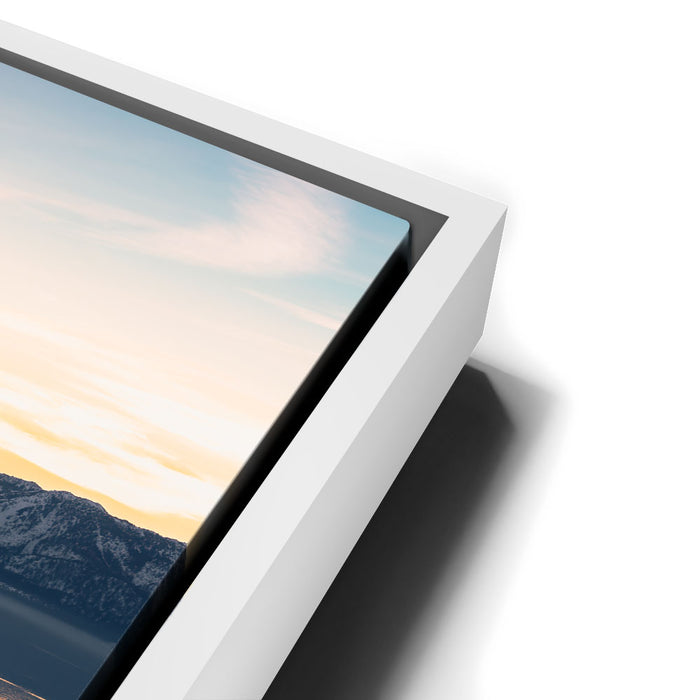 When you receive your order it will arrive pre-installed with industrial sawtooth coated metal hooks so it’s ready to hang right out of the box. Our handmade floating frames, available in various thickness options, add a touch of sophistication and come ready to hang right out of the box with a high quality wire hangar.