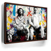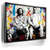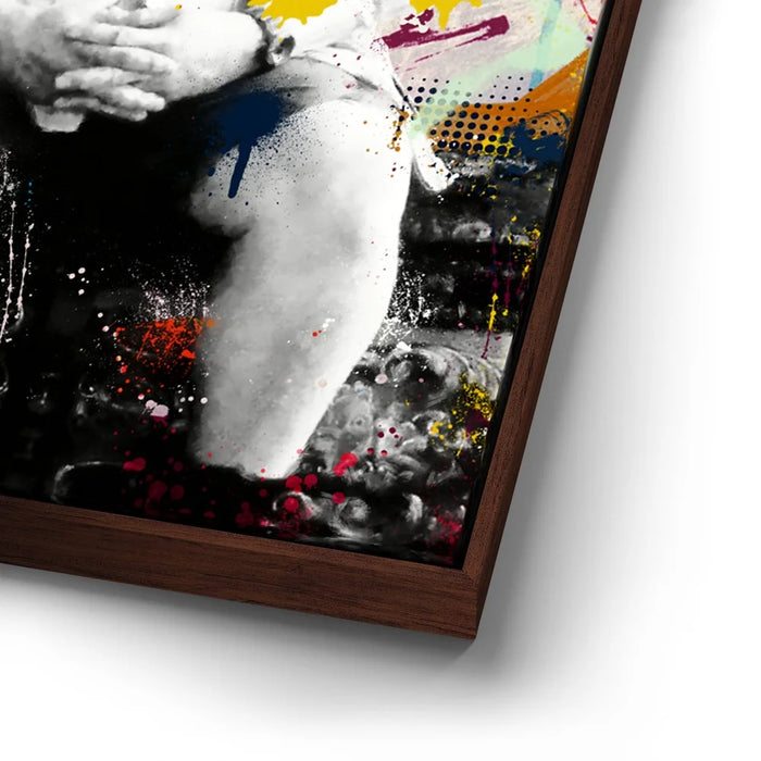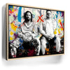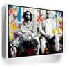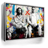“Calmer Than You Are” bursts with irreverent energy, capturing the cult-classic duo from The Big Lebowski in a raw, defiant pose. Their grayscale stillness collides against a riot of neon splatters, graffiti tags, and paint drips, transforming two laid-back icons into a bold pop art statement. The red X slashed across the canvas heightens the tension, a rebellious mark that makes the piece as confrontational as it is nostalgic.