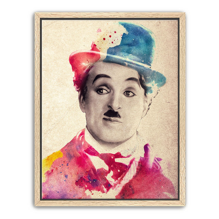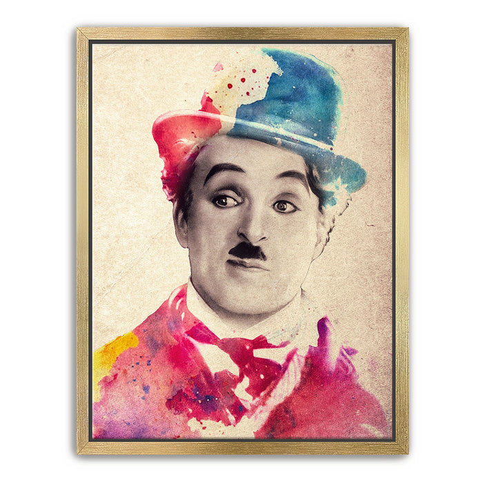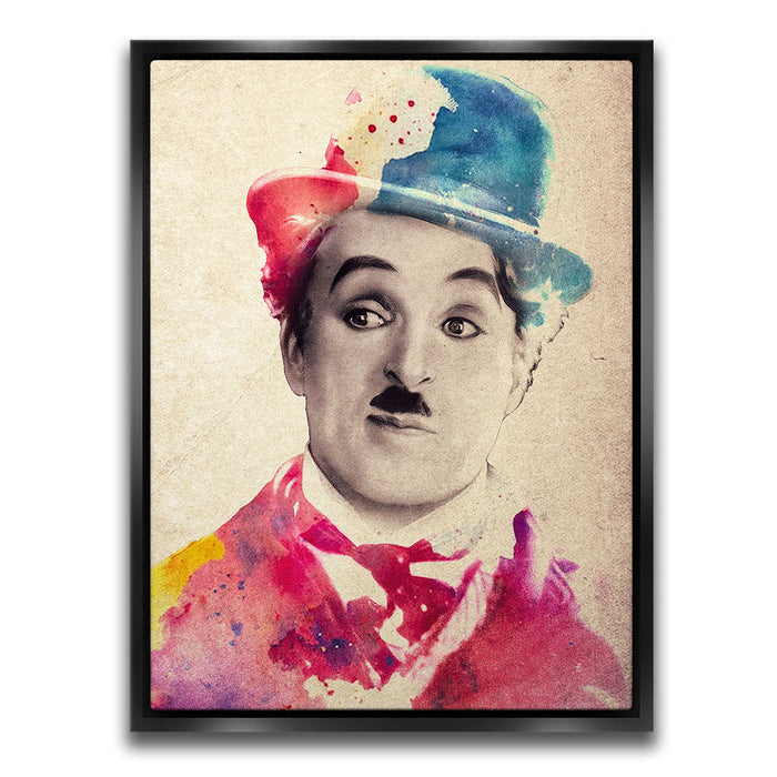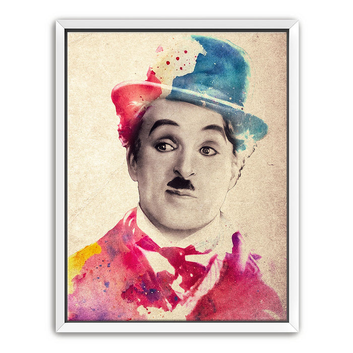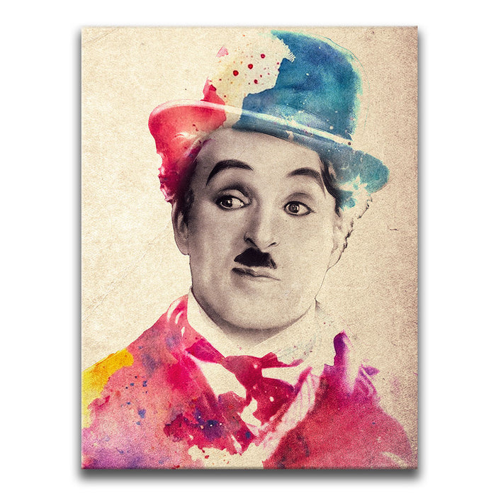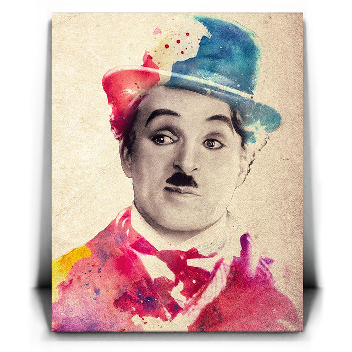 "Charlie Chaplin - Watercolor" is a vibrant and colorful portrait of the iconic comedian, brought to life through stunning watercolor techniques. The piece captures Chaplin's timeless comedic charm with a burst of color, blending abstract elements with traditional portraiture. Perfect for movie lovers and fans of classic comedy, this artwork brings a playful, colorful energy to any space.