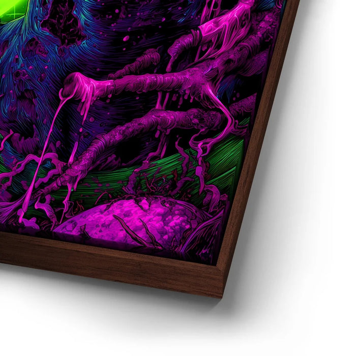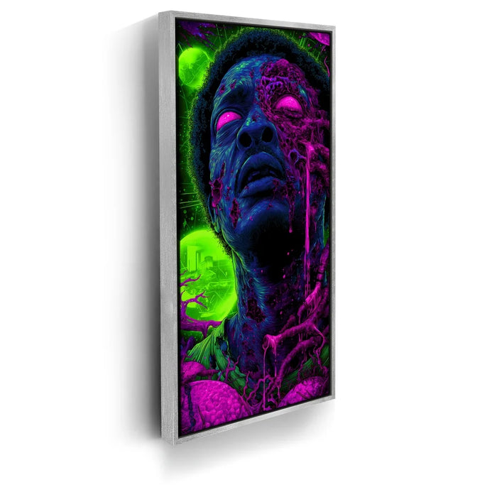 Chemical Saint by Kandise King blends sci-fi intensity with surreal, neon-soaked detail for a striking and unforgettable visual. The figure’s glowing eyes, bioluminescent skin tones, and melting, chemical textures create a futuristic atmosphere filled with tension, mystery, and transformation. Vivid greens and purples pulse through the background, giving the piece a high-energy, otherworldly feel that draws viewers in instantly.