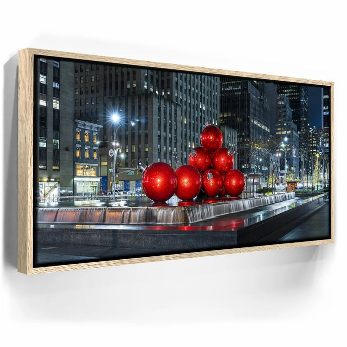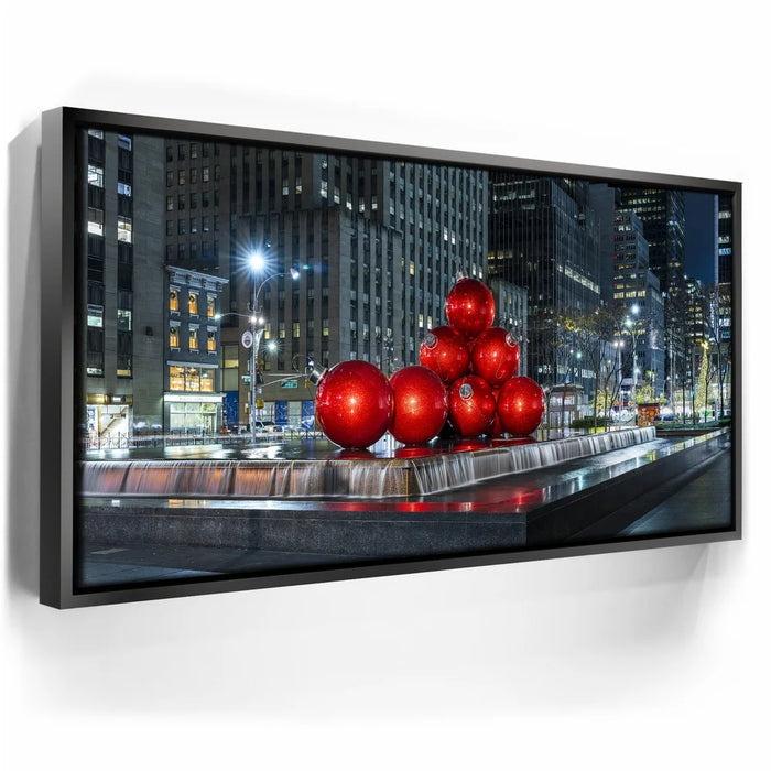 “Christmas Decorations In Front Of Radio City Music Hall, New York City” by Barbarossa captures the holiday magic of Manhattan at night. The oversized red ornaments shimmer under the city lights, reflecting the festive glow of the season in front of one of New York’s most famous landmarks.