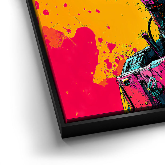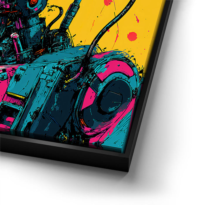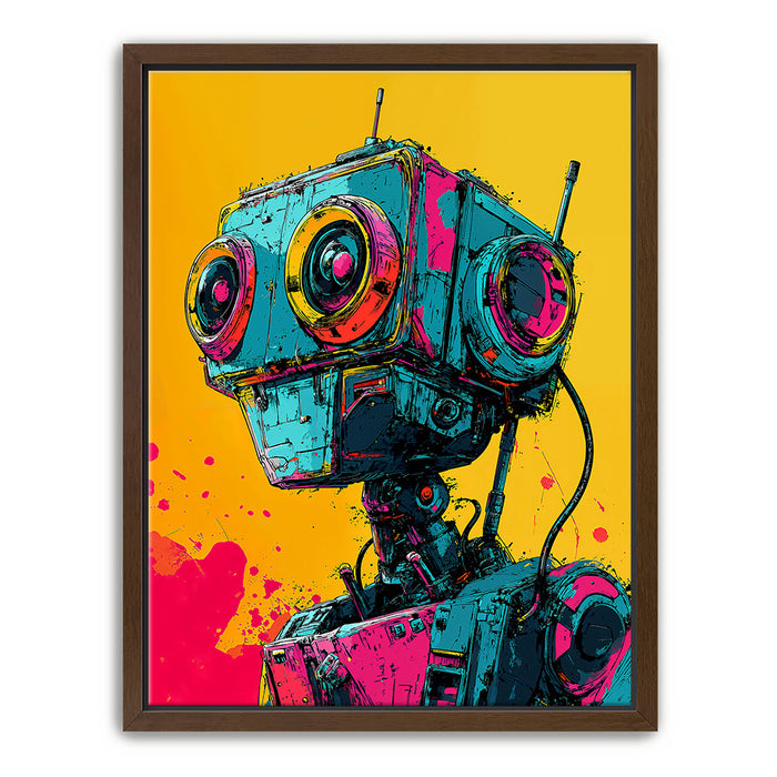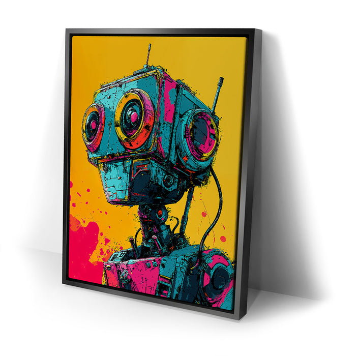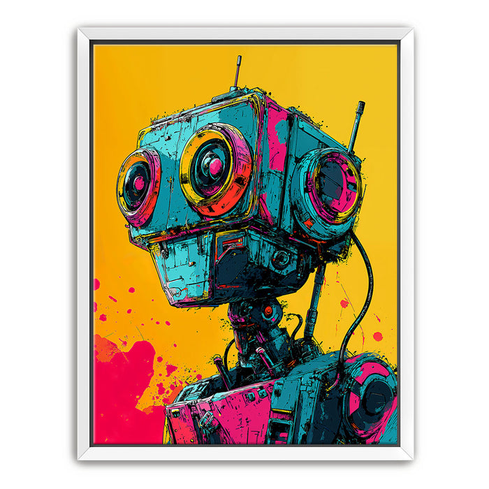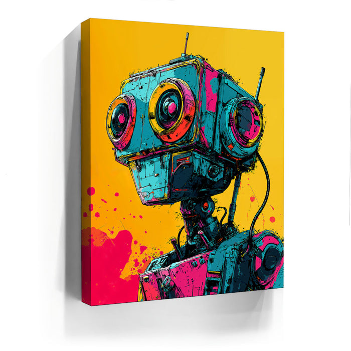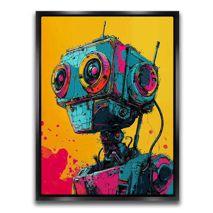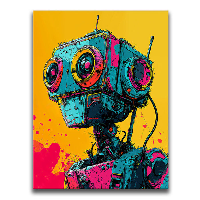 This artwork is perfect for fans of pop art, robotics, and bold, colorful designs.