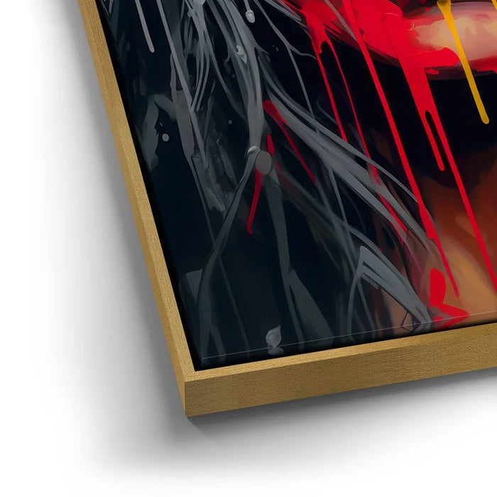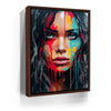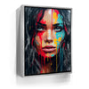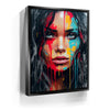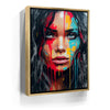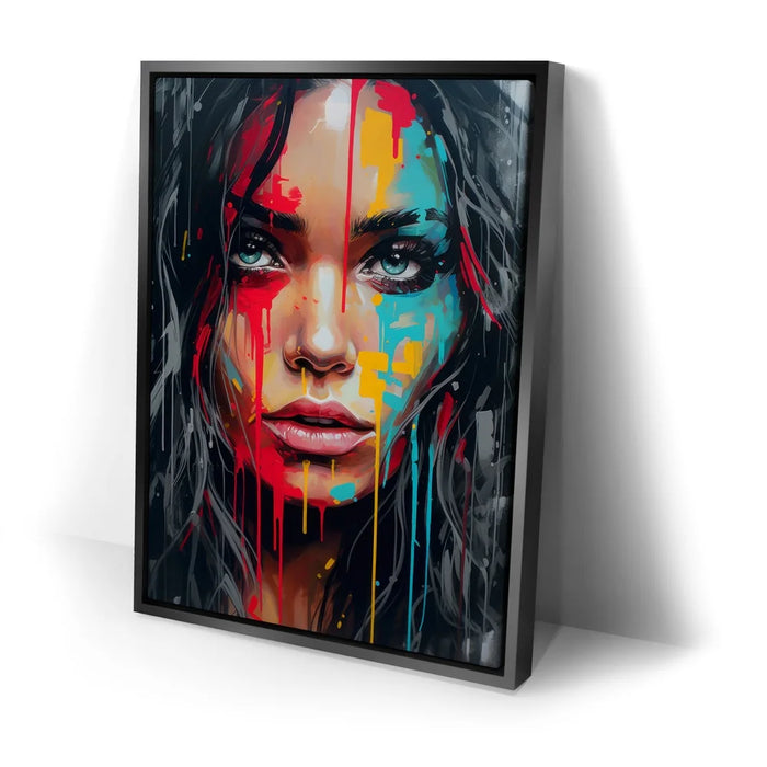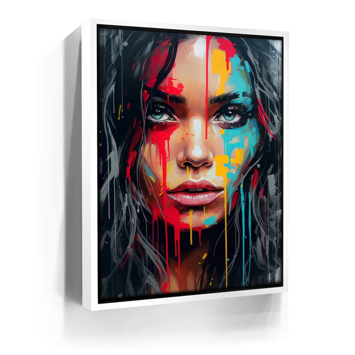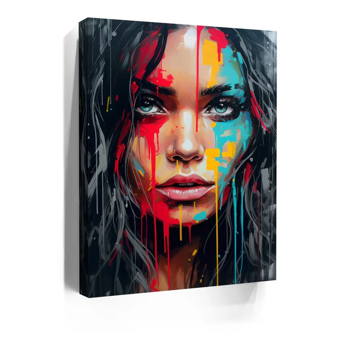Colorfall is a vivid fusion of strength and vulnerability — a portrait where raw emotion drips through bold streaks of red, blue, and gold. The paint seems to flow from within, symbolizing both release and renewal, as if color itself becomes an extension of the soul. Her piercing gaze and expressive face capture the tension between chaos and calm, making this piece a striking celebration of human intensity and artistic freedom.