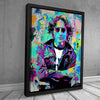 "Colorful Abstract Lennon" by Stephen Chambers is a vibrant pop art portrait of John Lennon, inspired by the iconic style of Andy Warhol. This abstract piece blends stencil and splatter techniques, capturing the spirit of the counterculture movement and the musical legacy of The Beatles. The use of bold colors like purple and blue creates a striking contrast, making it a perfect addition to any art collection.