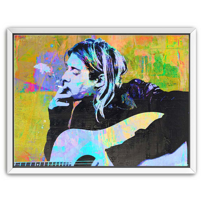 "Come As You Are" by Stephen Chambers is a dynamic, stencil-style pop art piece inspired by the iconic grunge rock band Nirvana and its legendary frontman Kurt Cobain. With vibrant splatter effects and bold colors, this artwork captures the rebellious spirit of the '90s music scene, featuring references to timeless songs like "Smells Like Teen Spirit" and "Come As You Are."