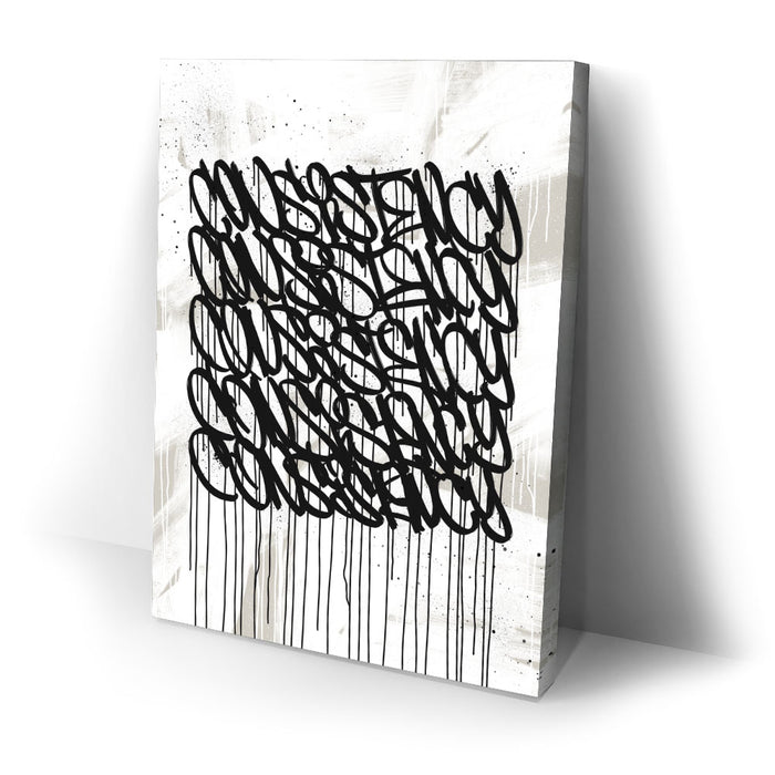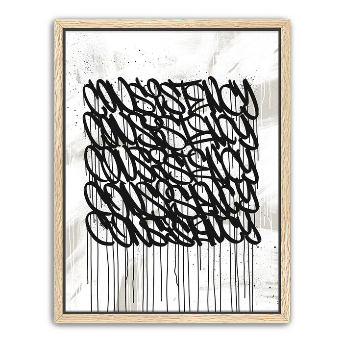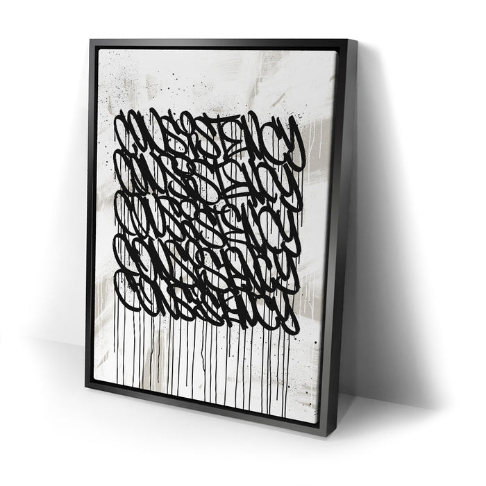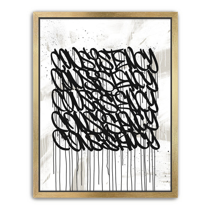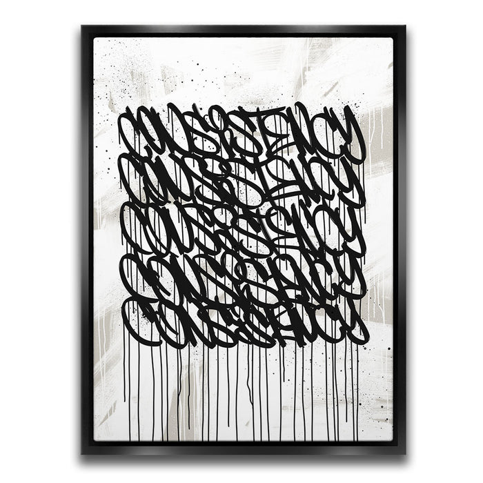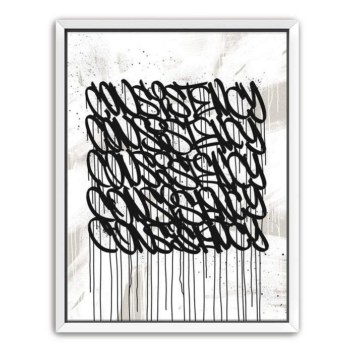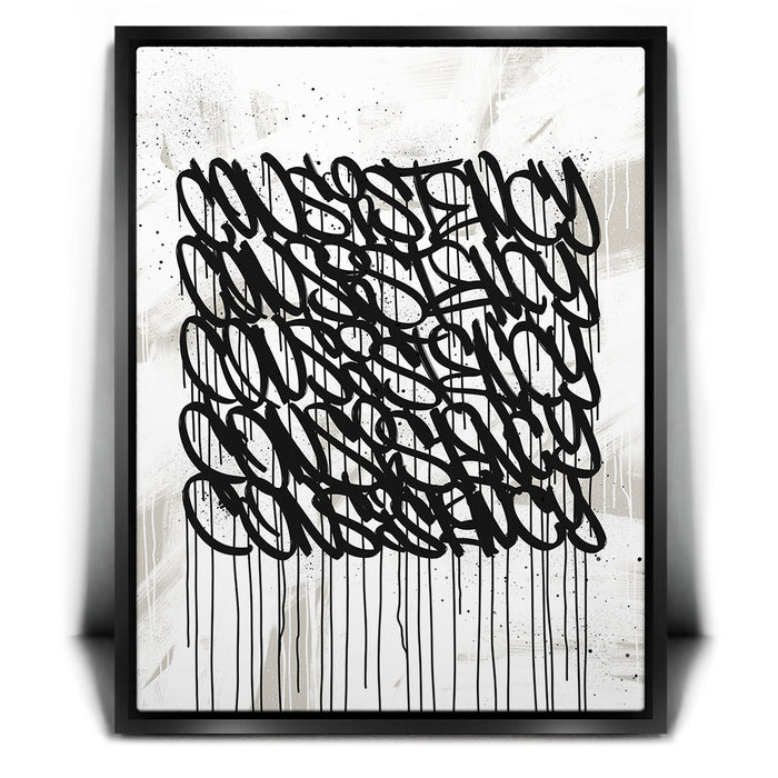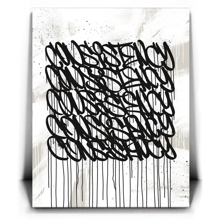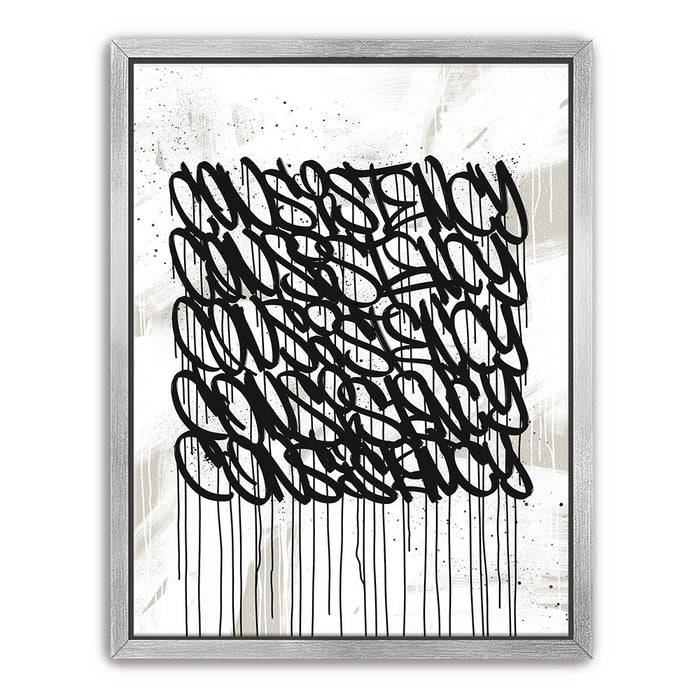 Ideal for modern spaces, offices, or creative environments, "Consistency Graffiti - Black and White I" brings an edgy, inspiring aesthetic that complements any decor. Its clean, grayscale design emphasizes focus and determination, motivating you to achieve your goals.